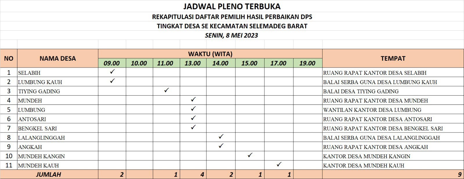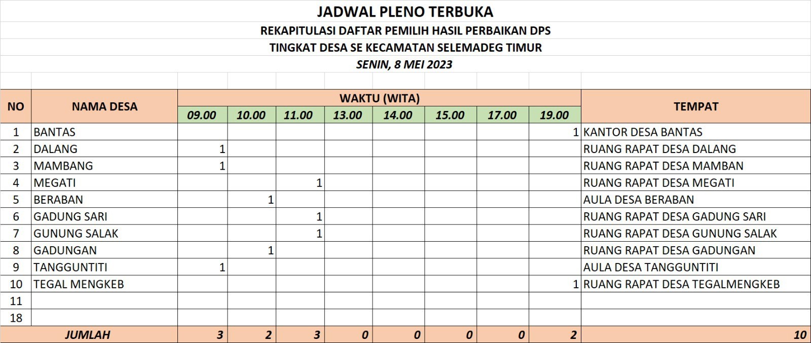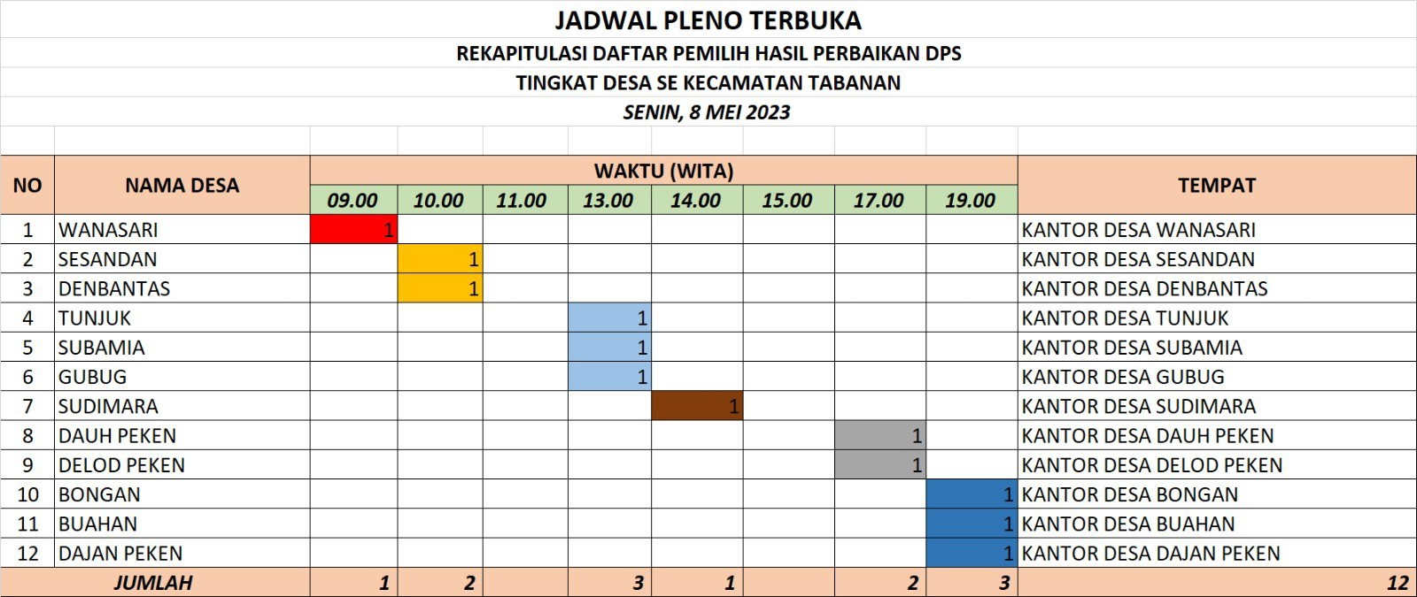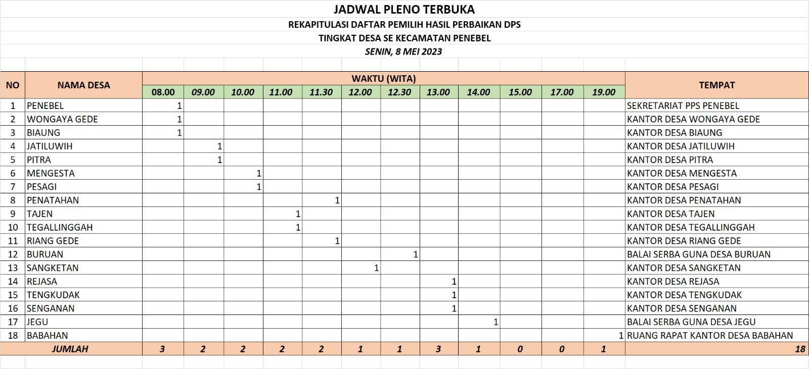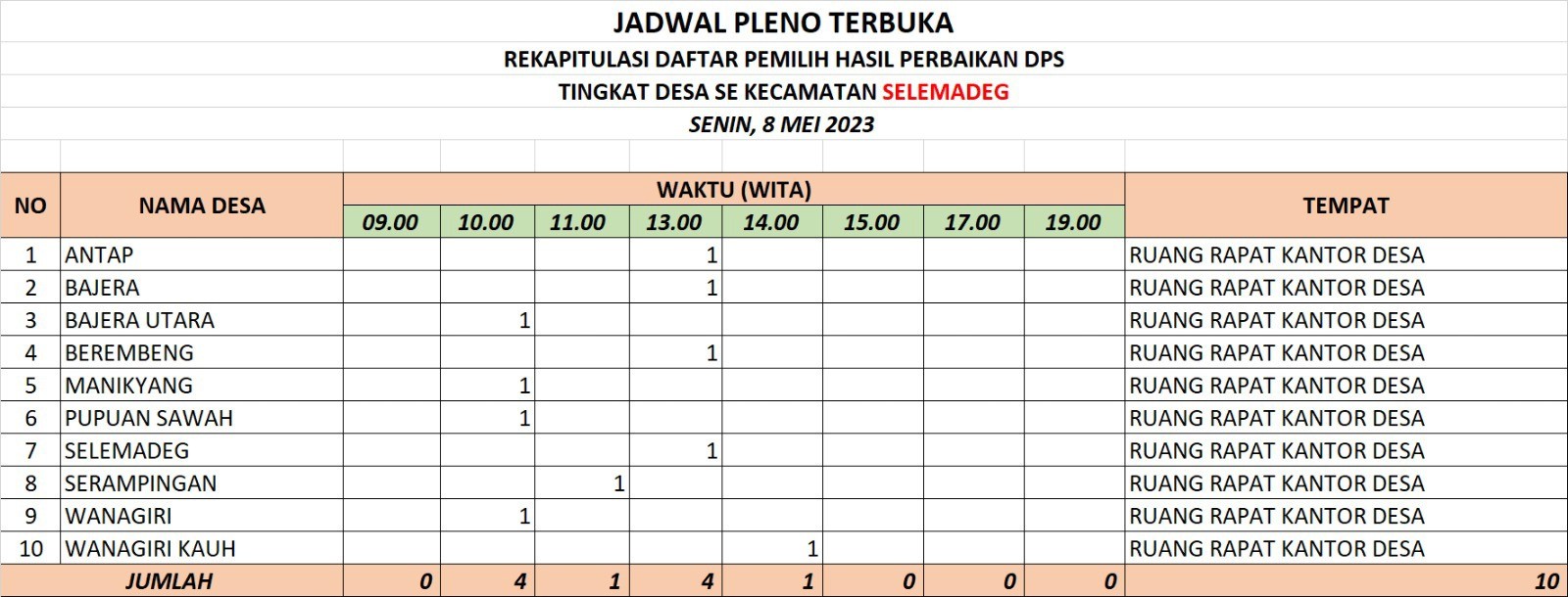 Menurut informasi yang didapat, hari ini merupakan Pleno sekaligus ditetapkannya DPHP – DPS secara Serentak pada sejumlah 133 Desa yang ada di Kabupaten Tabanan. Sebagian besar kegiatan tersebut diadakan di ruang rapat Kantor Desa (Kantor Perbekel) masing-masing, namun ada pula yang menyelenggarakannya pada tempat yang berdekatan dengan Kantor Desa setempat.