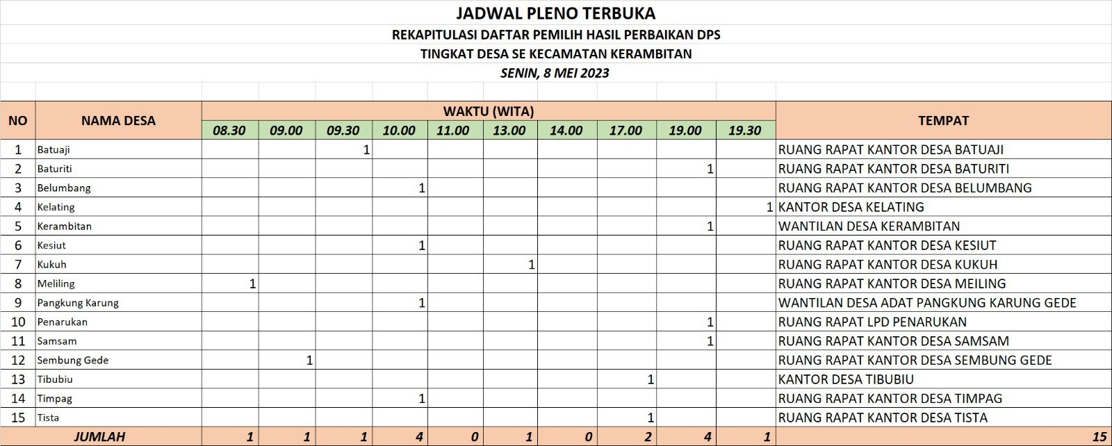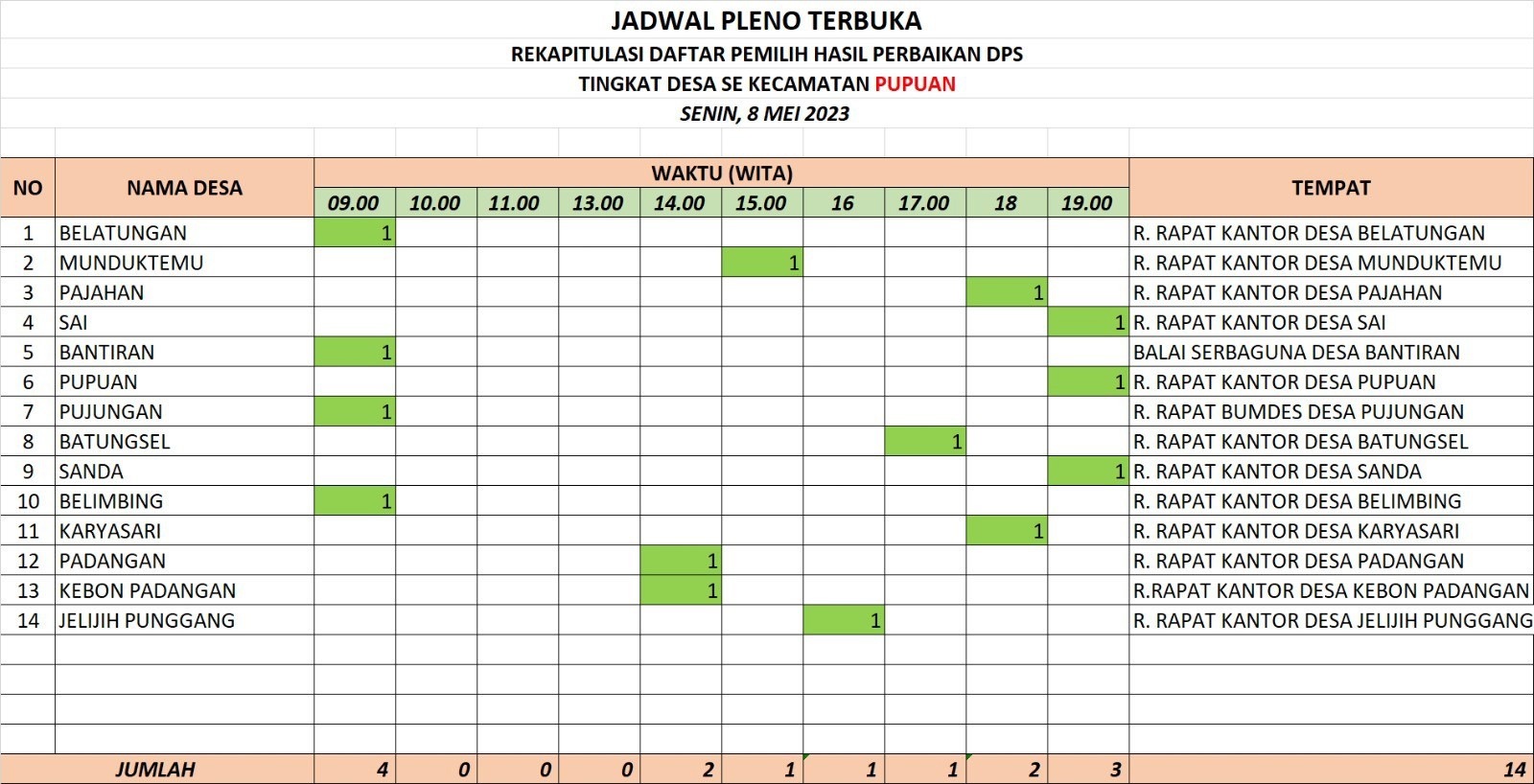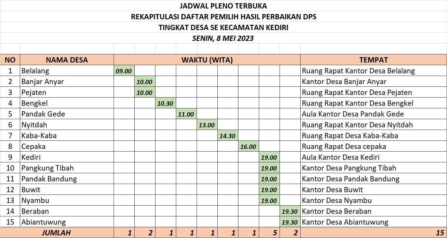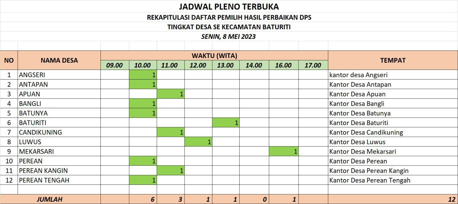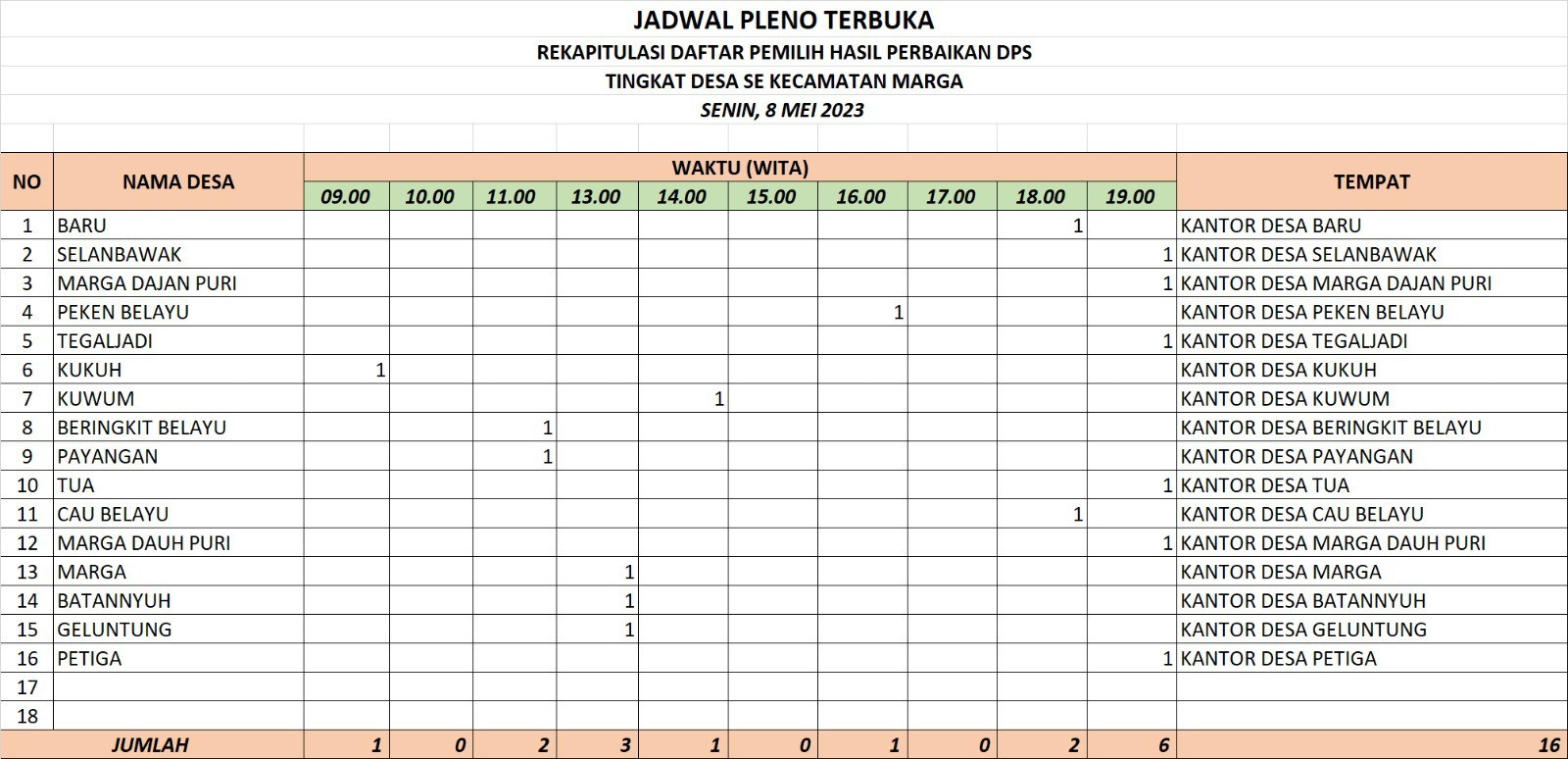 Menurut informasi yang didapat, hari ini merupakan Pleno sekaligus ditetapkannya DPHP – DPS secara Serentak pada sejumlah 133 Desa yang ada di Kabupaten Tabanan. Sebagian besar kegiatan tersebut diadakan di ruang rapat Kantor Desa (Kantor Perbekel) masing-masing, namun ada pula yang menyelenggarakannya pada tempat yang berdekatan dengan Kantor Desa setempat.
