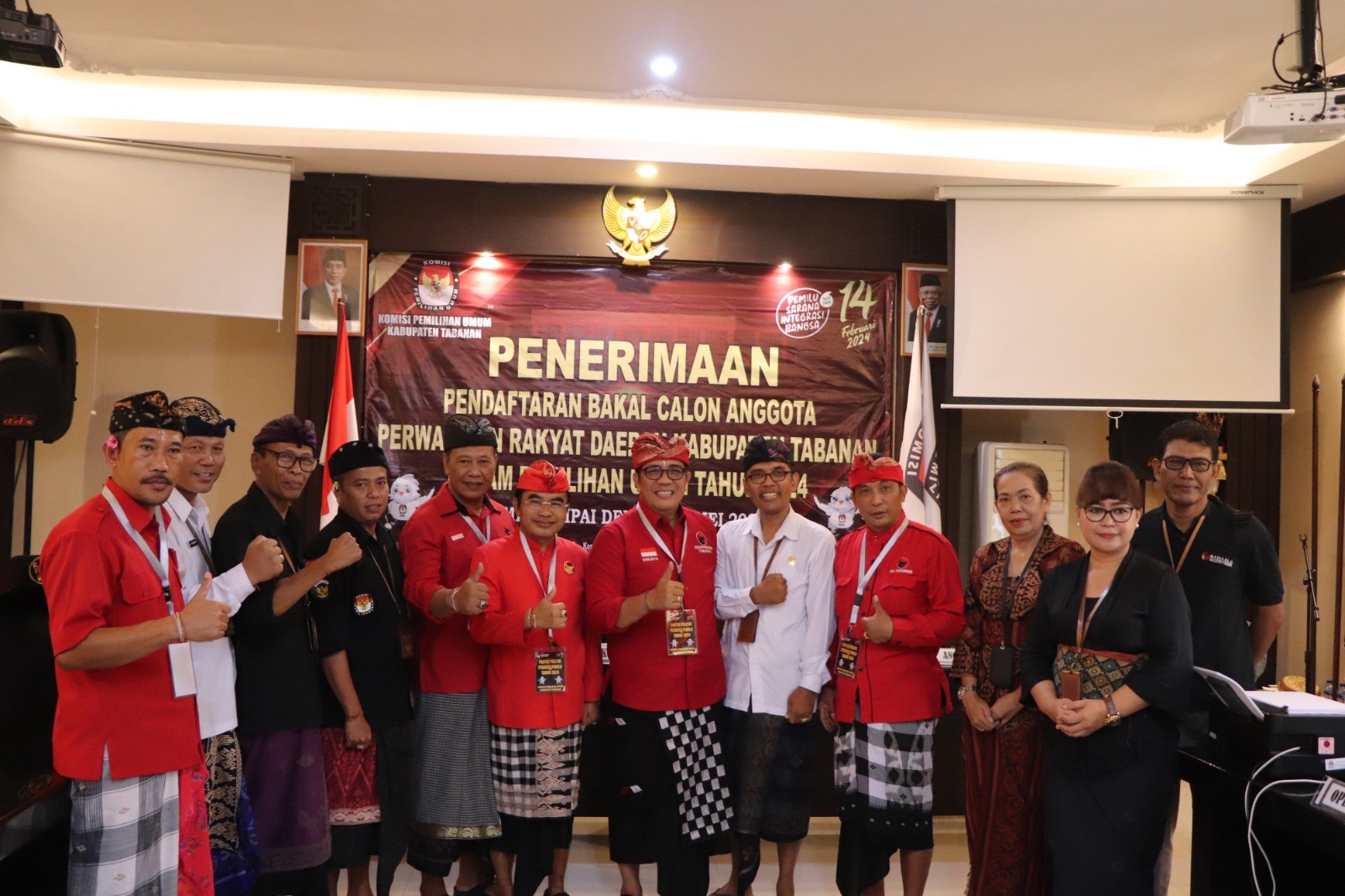 KPU Tabanan, Dangin Carik – Melansir dari unggahan media sosial Komisi Pemilihan Umum (KPU) Kabupaten Tabanan, hari Kamis tanggal 11 Mei tahun 2023, “Partai Demokrasi Indonesia Perjuangan ( PDI Perjuangan ) ajukan Bakal Calon Anggota DPRD Kabupaten di KPU Tabanan, Kamis ( 11/5 ). Rombongan PDI Perjuangan Tabanan diterima pada pukul 08.30 Wita, Hadir Ketua DPC PDI Perjuangan Tabanan, Komang Gede Sanjaya beserta Sekretaris, sejumlah Bakal Calonnya, Petugas Penghubung/LO, Operator serta masa pendukungnya. Nampak yang masuk ke ruangan pengajuan hanyalah sejumlah kurang lebih 10 Orang. Dari proses pengajuan tersebut setelah melalui Admin dan Operator Sistem Informasi Pencalonan (Silon), KPU Tabanan memberikan status DITERIMA karena berkas pengajuan dalam Silon menunjukkan telah lengkap dan diterima.