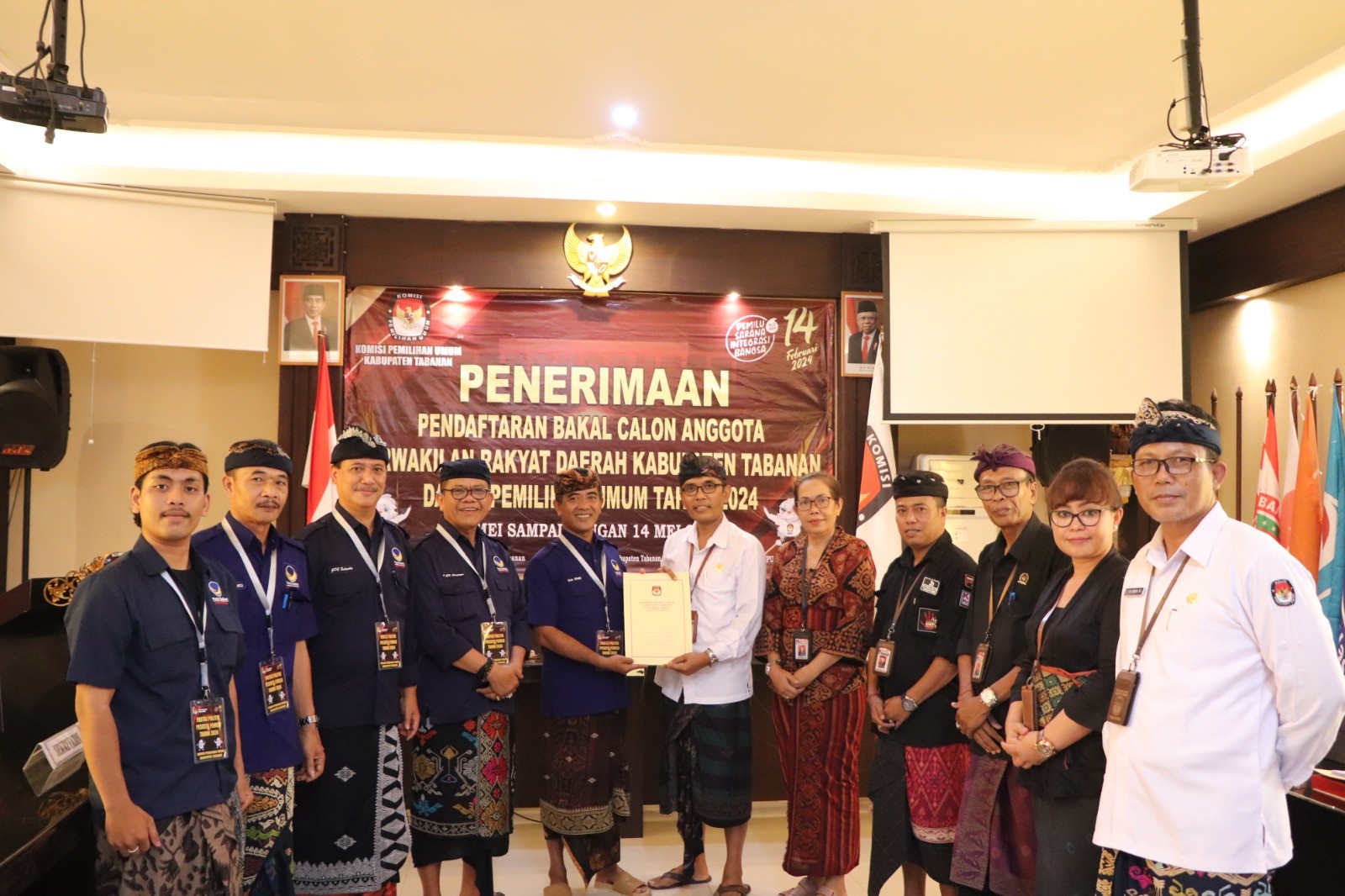 Selain itu di hari yang sama Partai Nasdem juga mengajukan Bakal Calon Anggota DPRD Kabupaten di KPU Tabanan, Kamis ( 11/5 ). Tiba di KPU Tabanan pada pukul 12.44 Wita.