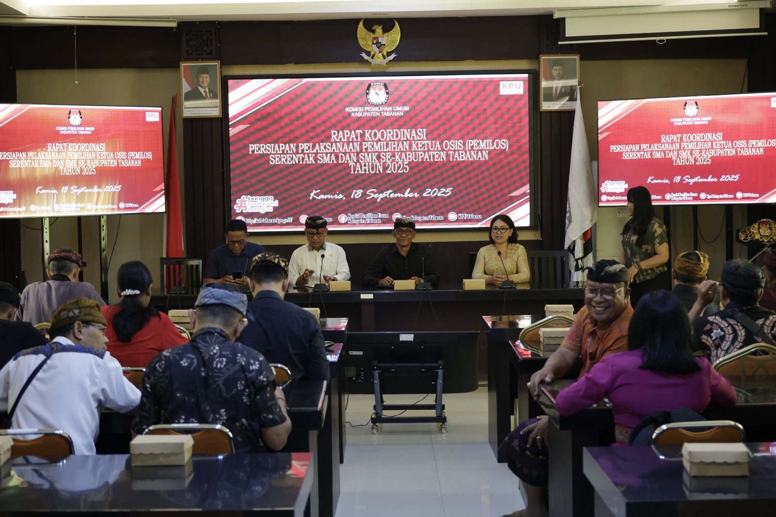 KPU Tabanan telah memilih tanggal untuk Pemilihan Ketua OSIS SERENTAK pada Tahun 2025 ini, yaitu akan digelar di tanggal 21 Oktober 2025. KPU Kabupaten Tabanan berharap program ini dapat berjalan baik terlebih ini merupakan sebuah karya untuk negeri dimulai dari Kabupaten Tabanan untuk mencetak generasi generasi baru ( pemilih pemula ) yang melek Politik dan Demokrasi, sehingga akan terwujud Pemilu dan Pemilihan yang berkualitas di masa mendatang.
