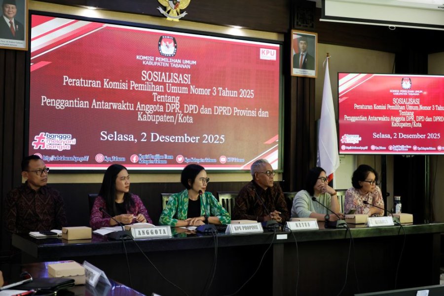 Beberapa hal baru terkait Penggantian Antar Waktu ( PAW ) dalam PKPU N0 3 Tahun 2025 disampaikan dalam Sosialisasi pada Selasa, 2 Desember 2025 di ruang rapat kantor KPU Kabupaten Tabanan. Mengundang Stake holder terkait hadir Kepala Badan Kesbangpol Tabanan dan DPRD Kabupaten Tabanan,Ketua dan anggota Bawaslu Tabanan serta Partai Politik peserta Pemilu Tahun 2024 tingkat Kabupaten. Hadir Anggota KPU Provinsi Bali, Luh Putu Sriwidyastini sebagai narasumber dalam acara sosialisasi PKPU tersebut.