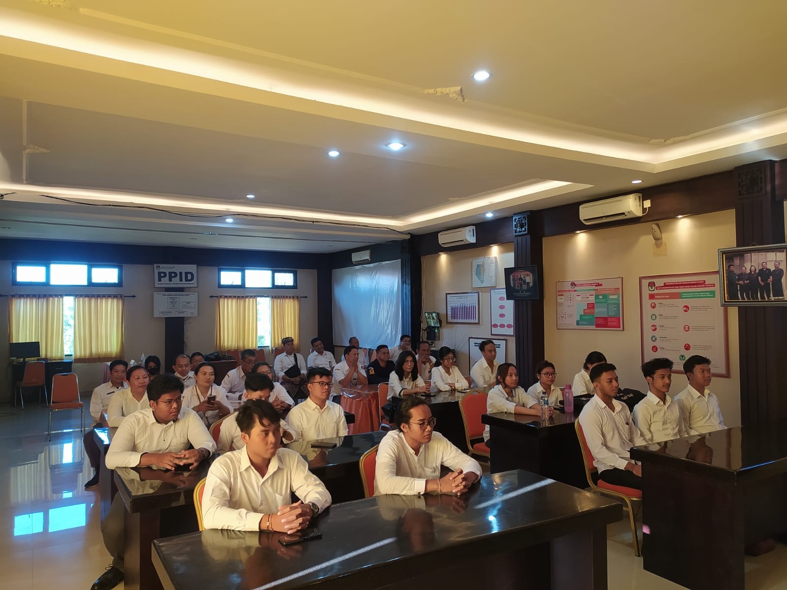 Swandika memperkenalkan dirinya beserta Jajarannya kepada para Mahasiswa, selain itu Beliau juga menjelaskan sedikit mengenai Lembaga KPU Tabanan sampai tingkat KPU RI, termasuk didalamnya disiplin (jam kerja KPU Tabanan) dan hal lainnya.