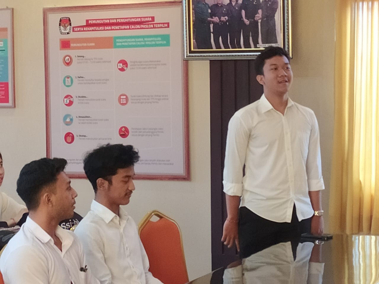 Mahasiswa juga disuruh memperkenalkan dirinya masing-masing dan salah satu perwakilannya juga menyampaikan tujuannya Magang di KPU Tabanan. “Kami Mahasiswa yang Magang di KPU Tabanan ini semuanya berasal dari Fakultas Hukum, Universitas Udayana, Bali,” ungkap para Mahasiswa saat ditanyai Sekretaris KPU Tabanan.
