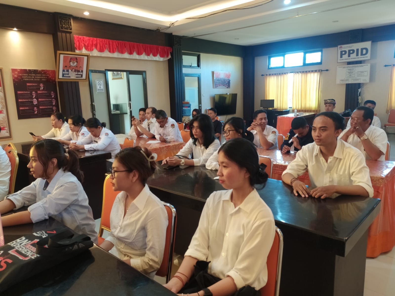 Selanjutnya kegiatan dilaksanakan di ruang rapat Kantor KPU Tabanan untuk memberikan arahan kepada Mahasiswa sekaligus sebagai rapat rutin Jajaran Sekretariat KPU Tabanan, dipimpin oleh Sekretaris KPU Tabanan, I Nyoman Swandika, Kamis (16/03/2023).