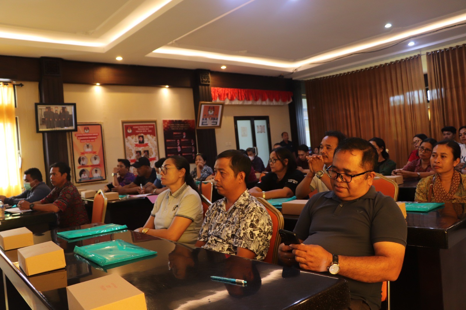 KPU Tabanan mengundang Sekretaris PPK Kediri dengan mengajak Staf Sekretariat Urusan Tata Usaha, Keuangan dan Logistik serta Tenaga Pendukung Sekretariat PPK Kediri dan Sekretaris ditambah Staf Sekretariat Urusan Tata Usaha, Keuangan dan Logistik Panitia Pemungutan Suara (PPS) Se-Kecamatan Kediri. Dalam hal ini Sekretaris KPU Tabanan dan Kasubbag Keuangan, Umum dan Logistik Sekretariat KPU Tabanan, menyampaikan arahannya. (Humas KPU Tabanan).