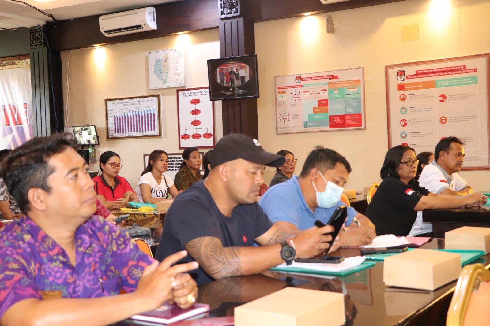 Hadir dalam kegiatan yaitu Sekretaris KPU Tabanan, I Nyoman Swandika dan Kasubbag Keuangan, Umum dan Logistik Sekretariat KPU Tabanan, Gusti Ayu Putu Kristiana Dewi. Hadir pula Ketua Panitia Pemilihan Kecamatan (PPK) Kediri serta perwakilan Sekretariat Bawaslu Kabupaten Tabanan.