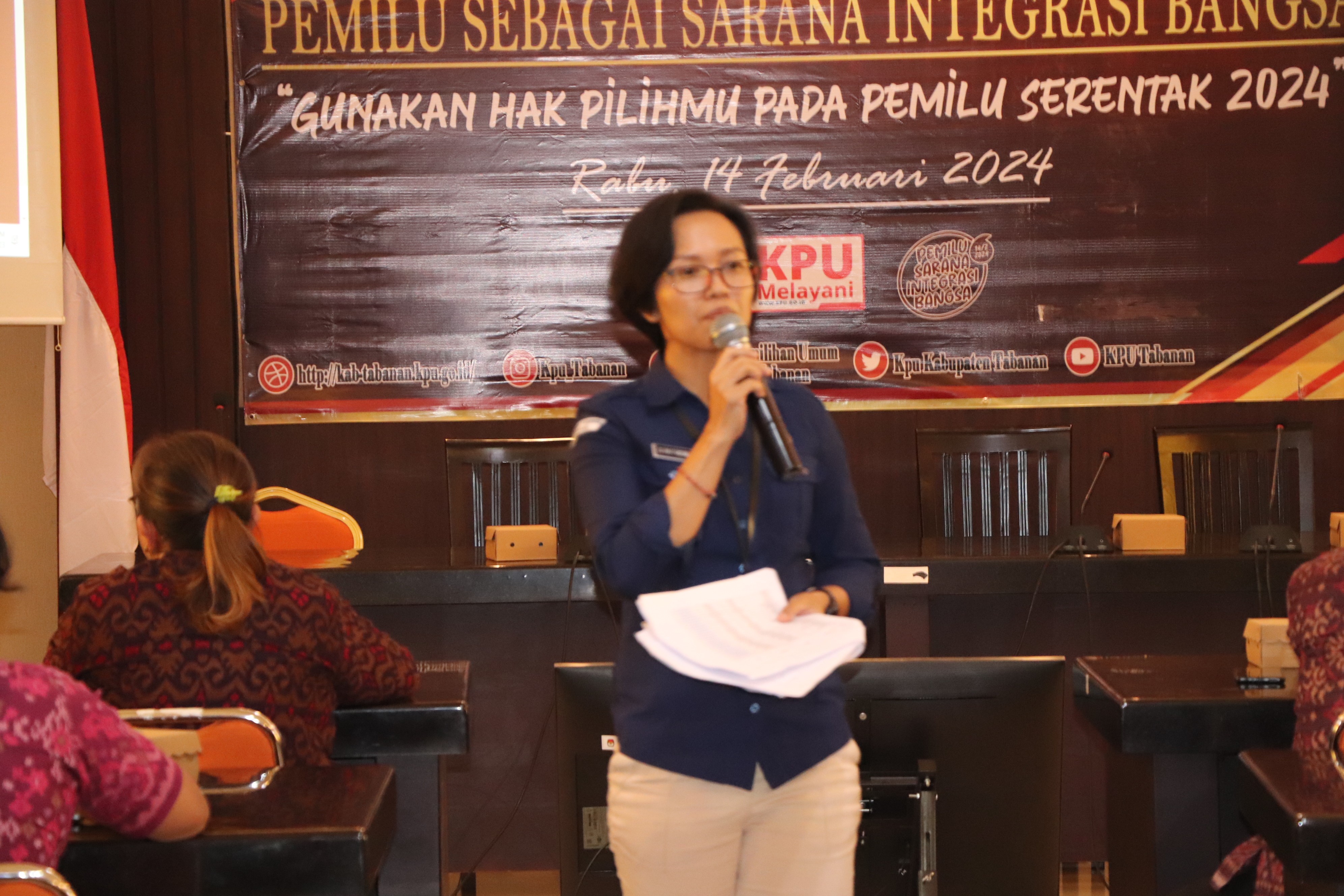 Sekitar pukul 13.00 Wita, bertempat di ruang rapat KPU Tabanan, kegiatan telah dimulai dengan Narasumber yakni Kasubbag Keuangan, Umum dan Logistik Sekretariat KPU Tabanan, Gusti Ayu Putu Kristiana Dewi. Sedangkan pagi harinya sekitar pukul 09.00 Wita, KPU Tabanan memberikan pemahaman mengenai Sistem Informasi Pertanggungjawaban Badan Ad Hoc Pemilu tahun 2024 kepada Sekretariat Badan Ad Hoc Se – Kecamatan Pupuan dengan Pemateri yang sama.