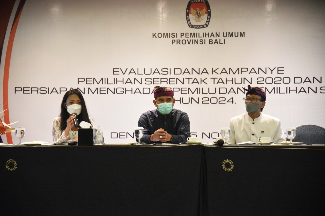 KPU Tabanan - Untuk meningkatkan kualitas penyelenggaraan Pemilu dan Pemilihan Serentak Tahun 2024 khususnya Dana Kampanye dimana KPU yang selalu terbentur dengan banyak aturan, antara satu peraturan dengan peraturan lainnya yang saling berhubungan, KPU Provinsi Bali melaksanakan Evaluasi Dana Kampanye Pemilihan Serantak Tahun 2020 dan Persiapan menghadapi Pemilu dan Pemilihan Serentak Tahun 2024, pada kamis 25 November 2021. Sebagai peserta rapat evaluasi adalah anggota Divisi Hukum dan Divisi Teknis Penyelenggaraan, Kasubbag Hukum serta Kasubbag Tekmas KPU Kab/Kota se Bali.