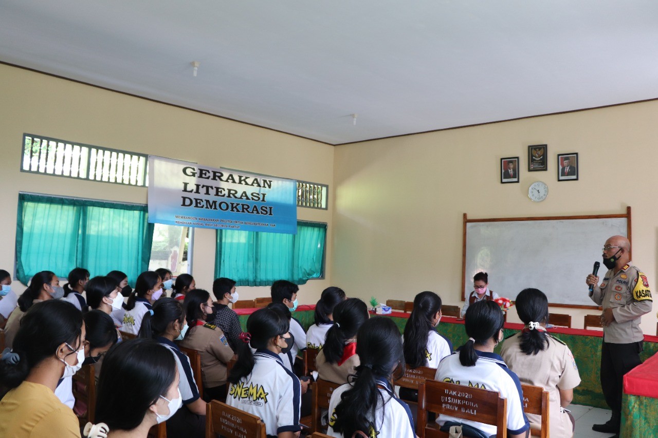 KPU Tabanan, Dangin Carik – Komisioner Komisi Pemilihan Umum (KPU) Kabupaten Tabanan yakni Anggota KPU Tabanan Ketua Divisi Sosialisasi, Pendidikan Pemilih, Parmas dan SDM, Ni Putu Suaryani, hadir dalam acara “Gerakan Literasi Demokrasi” di SMA N 1 Marga pada Jumat (17/12/2021).