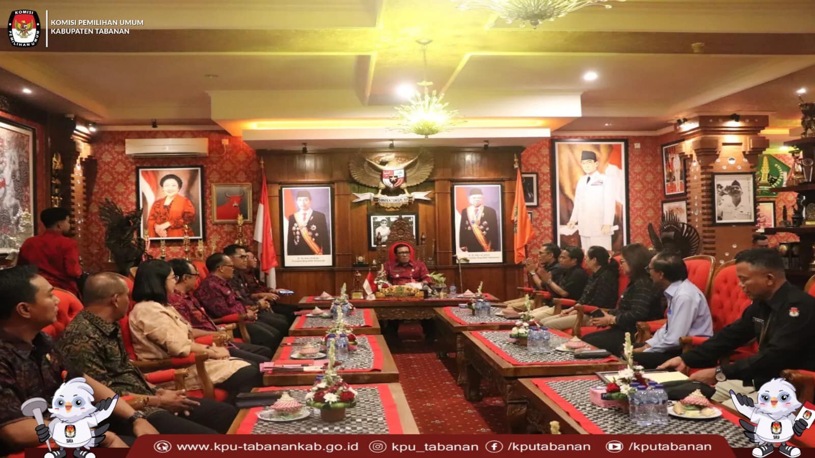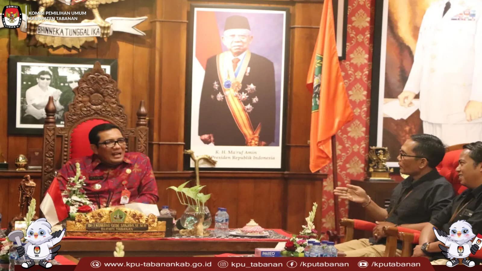 KPU Tabanan, Dangin Carik – Melansir unggahan media sosial Komisi Pemilihan Umum (KPU) Kabupaten Tabanan pada hari Rabu tanggal 20 September 2023, “Bertempat di ruang kerja Bupati Tabanan, Rabu (20/9/2023) Ketua, Anggota dan Sekretaris KPU Tabanan ucapkan terimakasih atas support penuh dari Pemerintah Daerah Kabupaten Tabanan dalam pelaksanaan Serah Terima Kirab Pemilu 2024 di Kabupaten Tabanan.