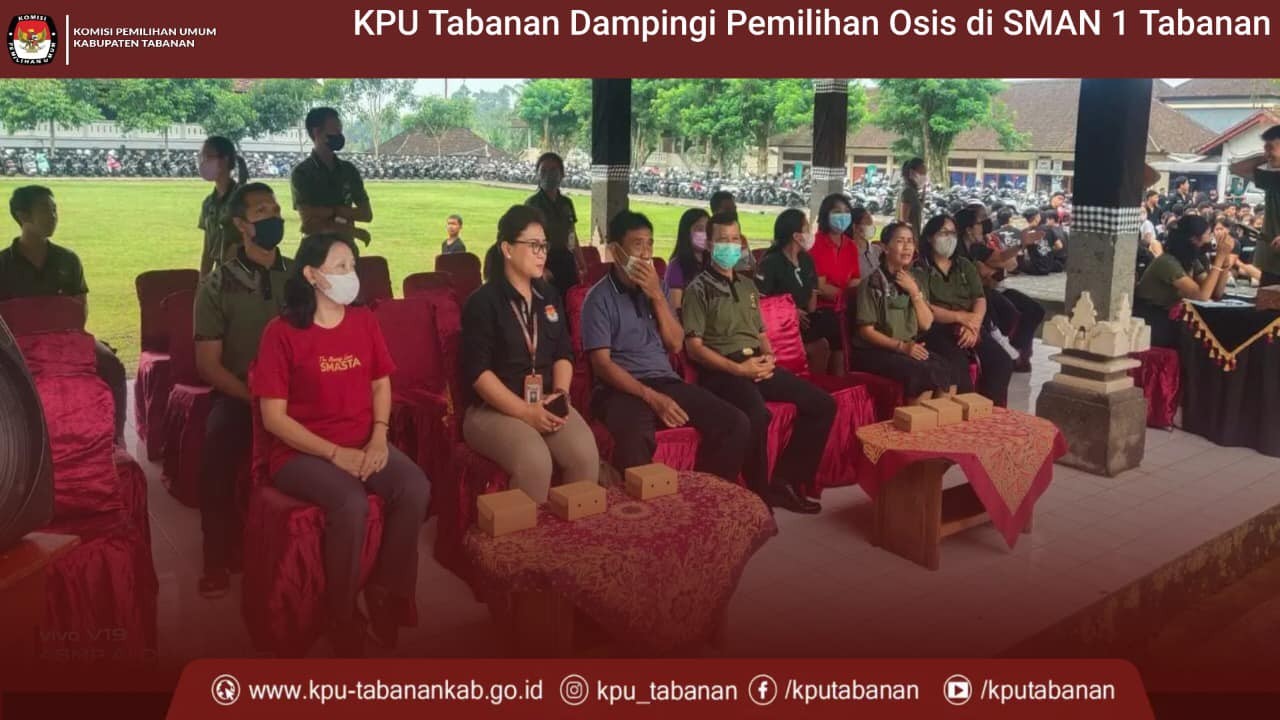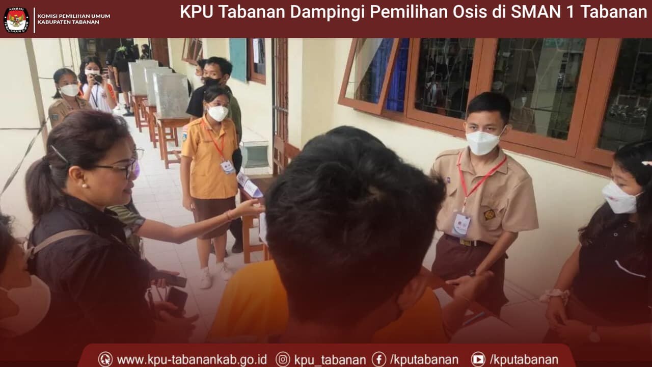 KPU Tabanan, Dangin Carik – Melansir unggahan media social Komisi Pemilihan Umum (KPU) Kabupaten Tabanan hari Jumat tanggal 18 November 2022, “Generasi muda adalah penentu masa depan Bangsa, ya hari ini KPU Tabanan, Ketua Divisi Sosialisasi, Pendidikan Pemilih, Partisipasi Masyarakat dan SDM, Ni Putu Suaryani dampingi proses Pemilihan Osis (Pemilos) di SMAN 1 Tabanan yang digelar di lingkungan sekolah SMAN 1 Tabanan, Jumat ( 18/11/22 ).