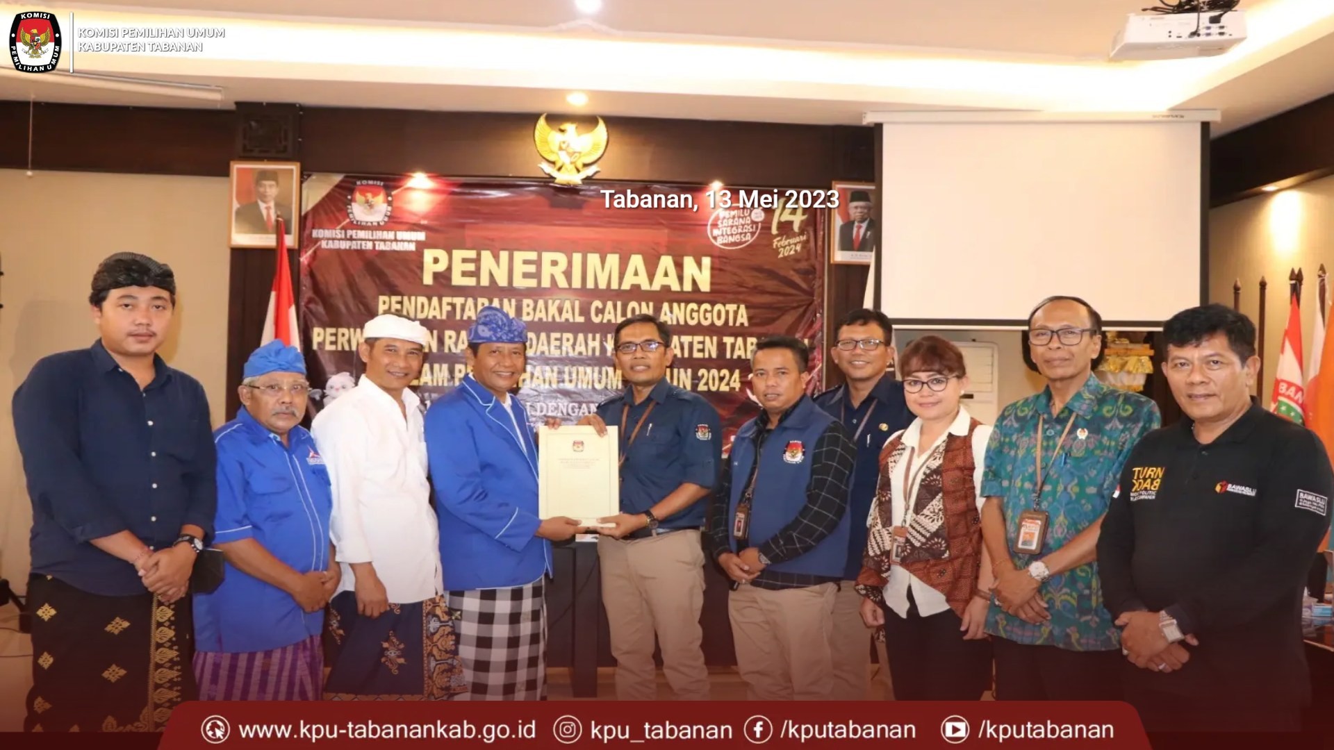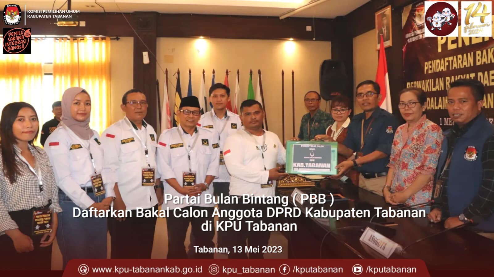 KPU Tabanan, Dangin Carik – Melansir dari media sosial Komisi Pemilihan Umum (KPU) Kabupaten Tabanan hari Sabtu tanggal 13 Mei 2023, “Partai Bulan Bintang (PBB) ajukan Bakal Calon Anggota DPRD Kab. Tabanan di KPU Tabanan. PBB Tabanan tiba di KPU Tabanan Sabtu ( 13/5 ) pada pukul : 15.30 wita, Hadir Ketua DPC PBB Tabanan, Imran Harahap bersama sekretaris dan jajaran, Bacaleg, LO dan Admin Silon. Berkas pengajuan yang diterima KPU Tabanan dinyatakan lengkap. KPU Tabanan memberikan status DITERIMA.