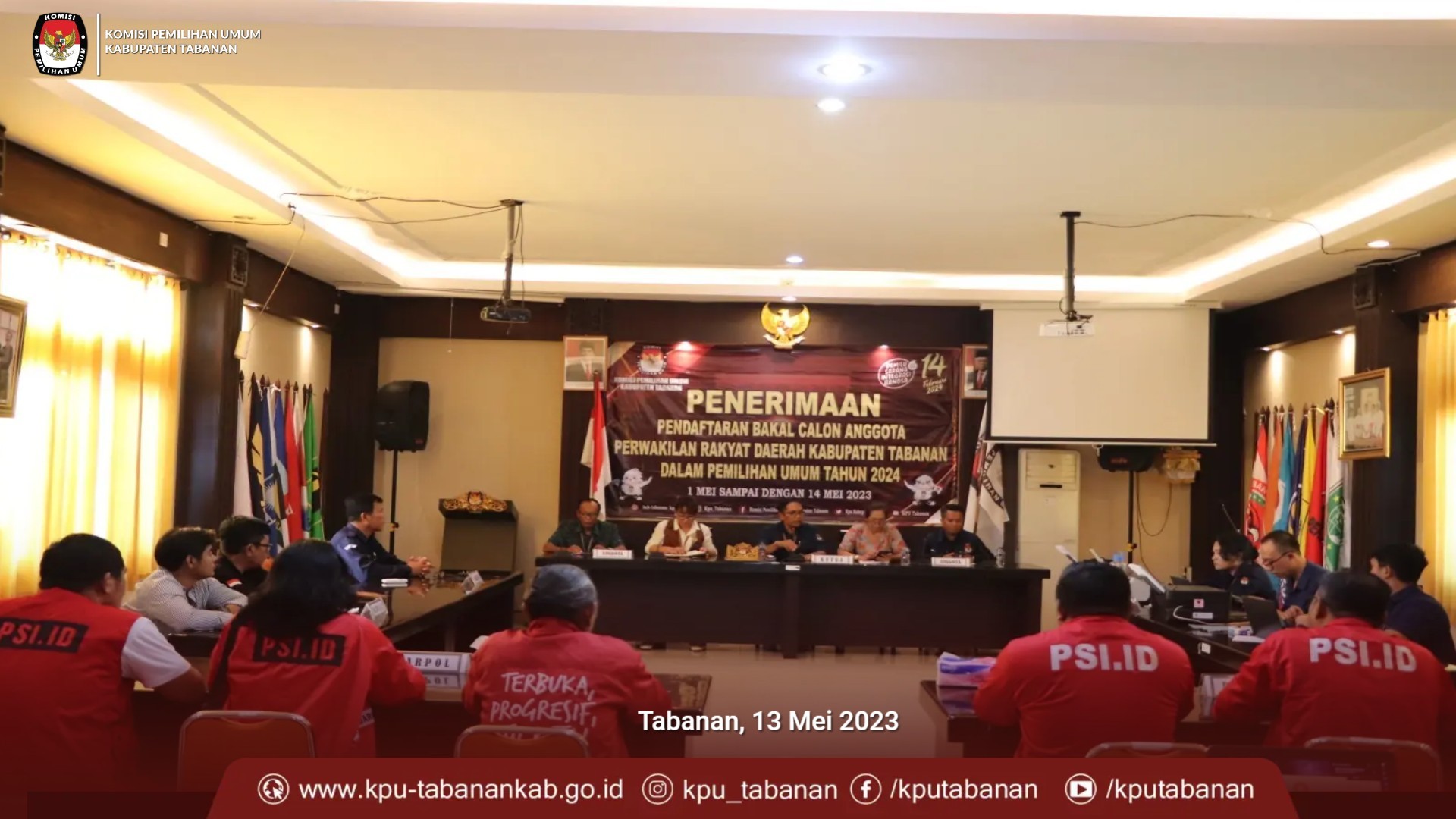 Sedangkan Partai Solidaritas Indonesia ( PSI ) ajukan Bakal Calon Anggota DPRD Kabupaten Tabanan di KPU Tabanan. PSI diterima oleh KPU Tabanan, Sabtu ( 13/5 ) Pukul : 15.07 wita. Dalam pengajuan tersebut hadir Ketua DPD PSI Tabanan, I Gede Putu Adhi Putera Negara, Sekretaris dan jajaran, Bacaleg, LO dan Admin Silon. KPU Tabanan melakukan pengecekan berkas melalui aplikasi Silon oleh Admin dan operator Silon KPU Tabanan, kemudian KPU Tabanan memberikan status DIKEMBALIKAN karena berkas pengajuan belum lengkap dan belum benar.