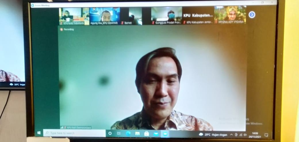KPU Tabanan - Dengan keluarnya PKPU 6 tahun 2021 tentang Pemutakhiran Data Pemilih Berkelanjutan KPU Bali dengan sigap mensosialisasikan kepada KPU Kabupaten Kota Sebali. Sosialisasi PKPU 6 itu berlangsung sekitar 4 jam melalui zoom meeting yang diwarnai diskusi yang hangat antar KPU Kabupaten Kota se Bali, Rabu, 24/11/2021.