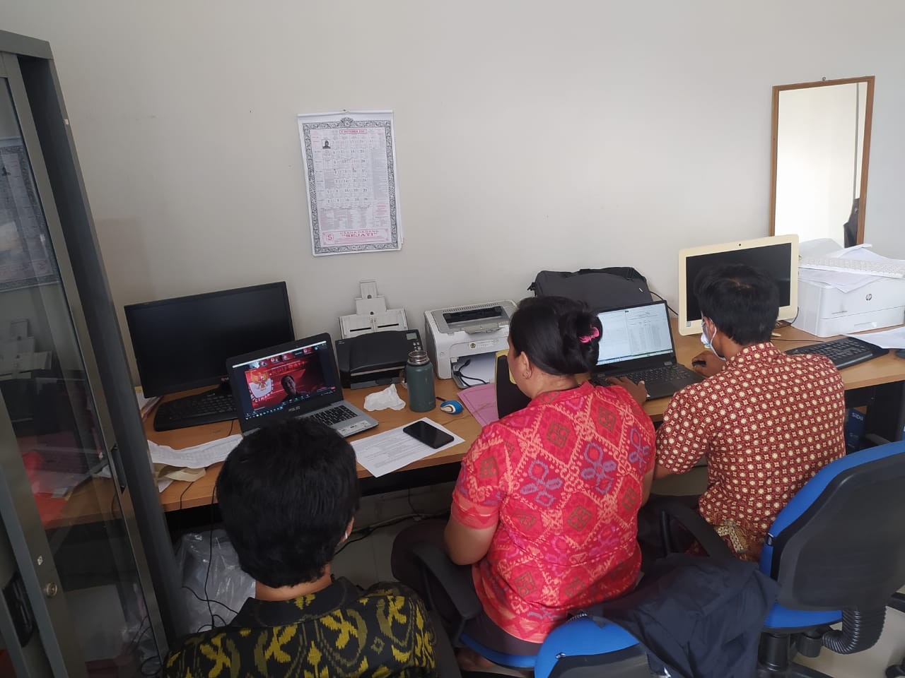 KPU Tabanan, Dangin Carik – Komisioner Komisi Pemilihan Umum (KPU) Kabupaten Tabanan Ketua Divisi Perencanaan, Data dan Informasi, I Ketut Sugina beserta jajaran Divisi Data KPU Tabanan dari ruang kerjanya masing-masing menghadiri Zoom Meeting terkait Daftar Pemilih Berkelanjutan (DPB) tahun 2021 yang diadakan KPU Provinsi Bali, sekitar pukul 09.00 Wita, Selasa, (02/11/2021).