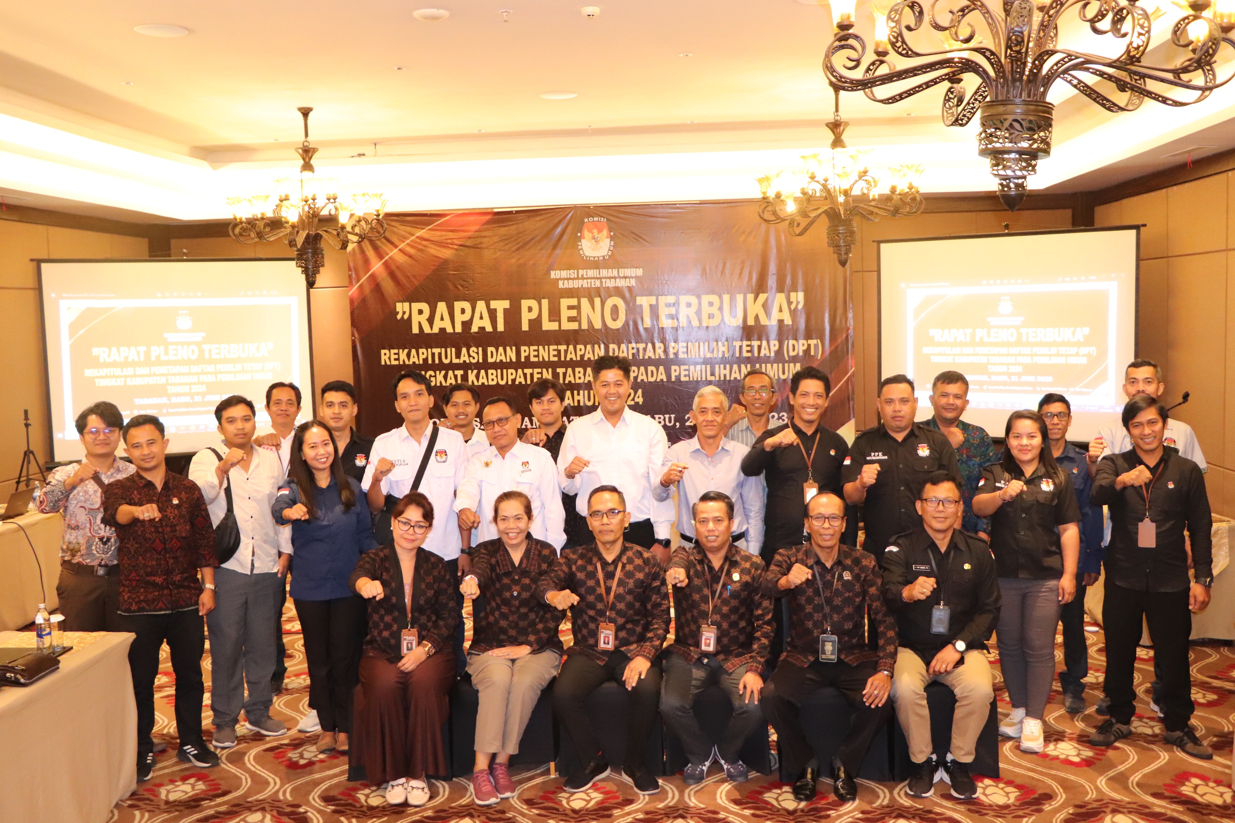 “DPT Kabupaten Tabanan dalam Pemilu Serentak 2024 mendatang adalah angka cantik, yakni, 372.372 Pemilih, sudah kita tetapkan, ini adalah hasil kerja Kita bersama. Kami mengucapkan banyak terima kasih atas partisipasinya dalam proses pemutakhiran data Pemilih selama ini,” ucapnya. Pemilih tersebut kata dia tersebar di 10 Kecamatan, 133 Desa dan 1.545 TPS di Kabupaten Tabanan.