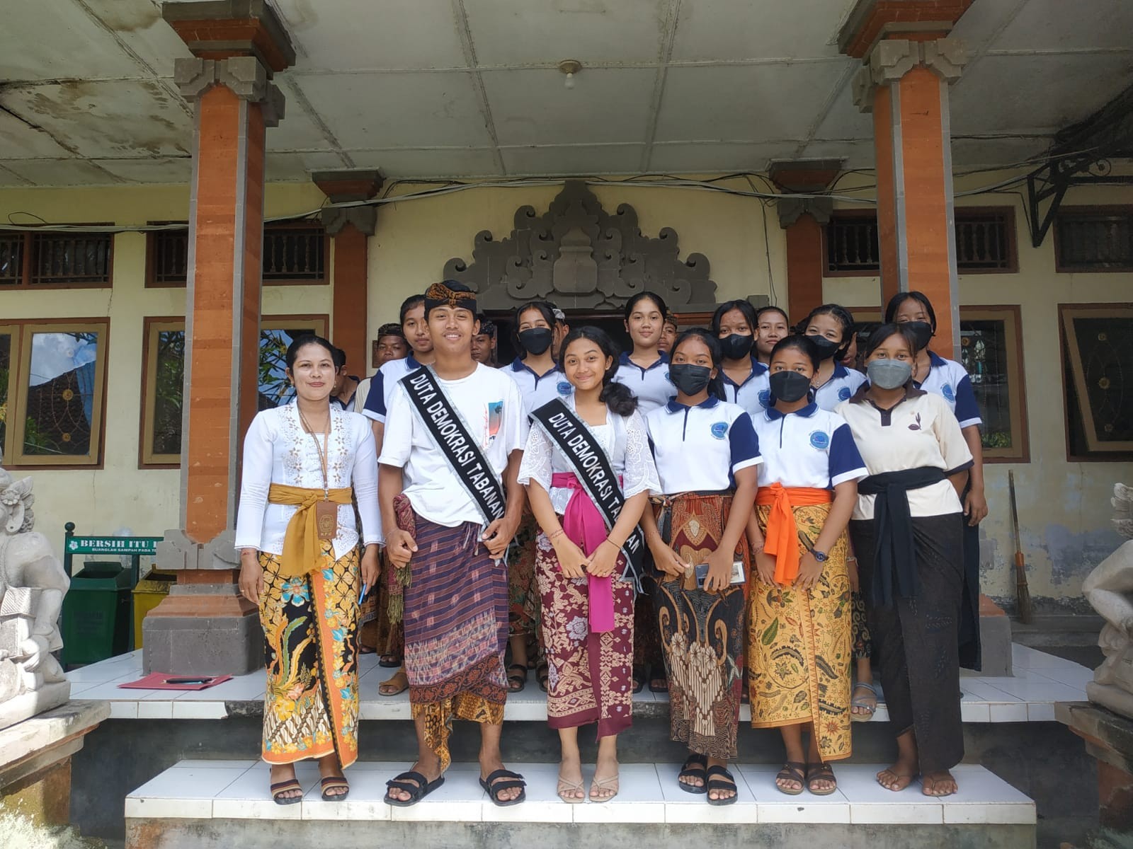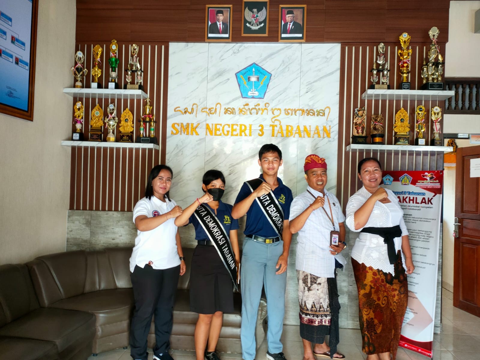Jajaran KPU Tabanan yang melaksanakan pendampingan Duta Demokrasi mulai dari Komisioner dan Kesekretariatan. Sekolah yang dituju sesuai jadwal hari ini yakni SMAN 1 Selemadeg, SMAN 1 Pupuan, SMAN 1 Kerambitan, SMKN 3 Tabanan, SMK Restumuning, SMAN 1 Baturiti, SMK Nasional Tabanan, SMK Margarana, SMAN 1 Penebel, SMK Triatma Jaya, SMKN 2 Tabanan dan SMAN 1 Marga.