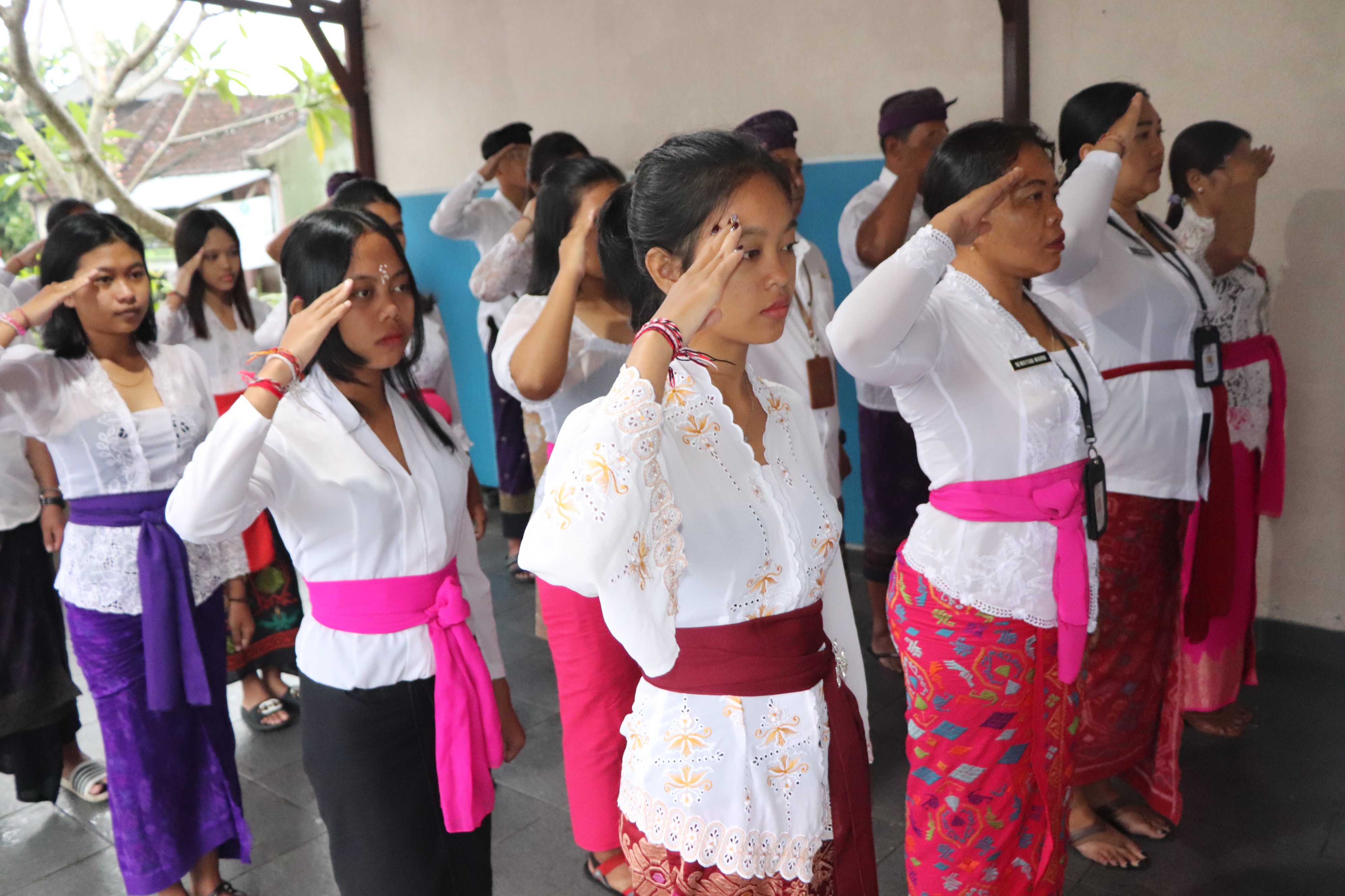 Kegiatan ini diisi juga dengan pembacaan teks proklamasi, teks Pancasila dan UUD Negara RI tahun 1945 dan pembacaan Doa serta sambutan Ketua KPU Tabanan. Yang menarik adalah seluruh Jajaran KPU Tabanan menggunakan pakaian adat daerah kecuali Satuan Jagat Saksana KPU Tabanan. (Humas KPU Tabanan).