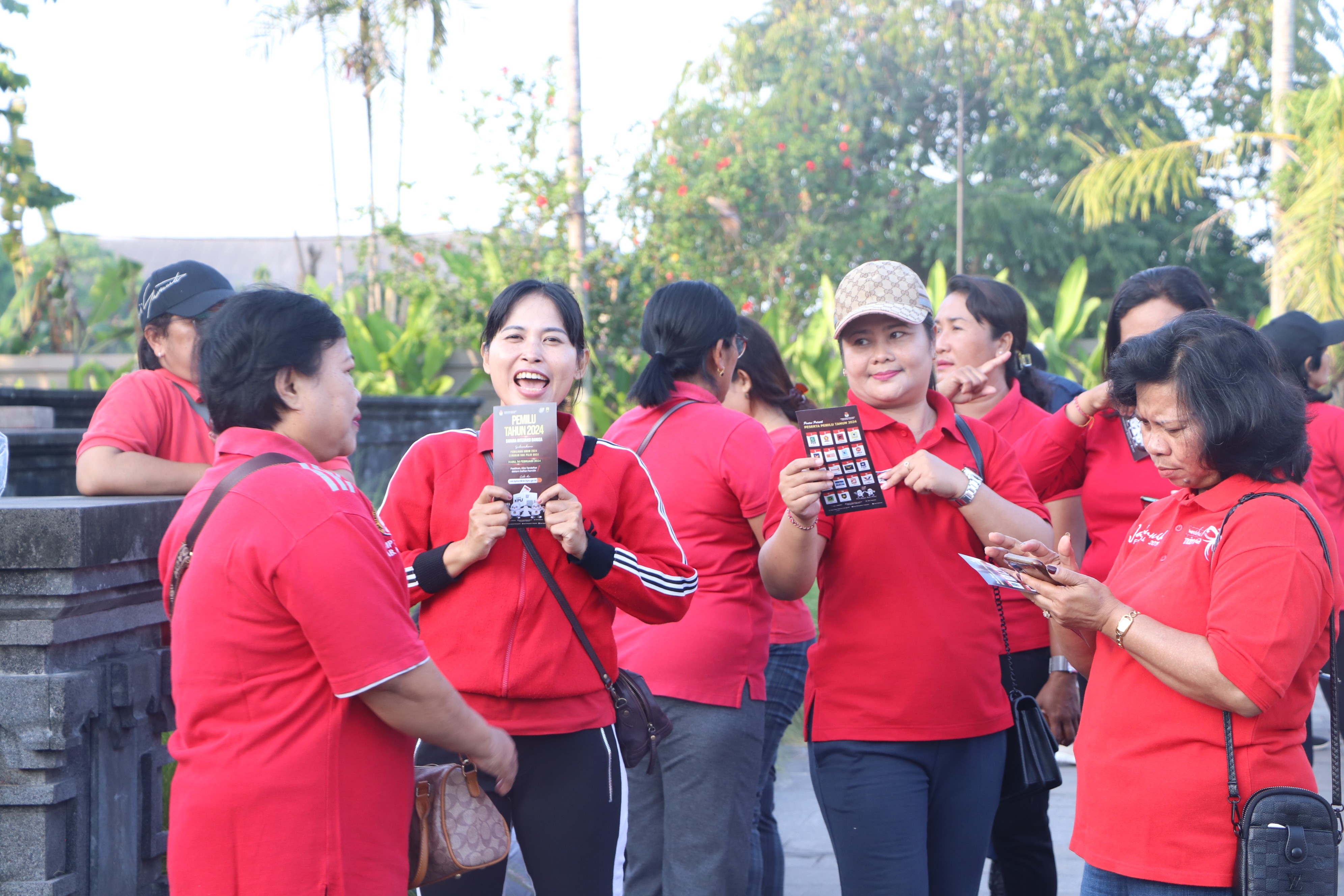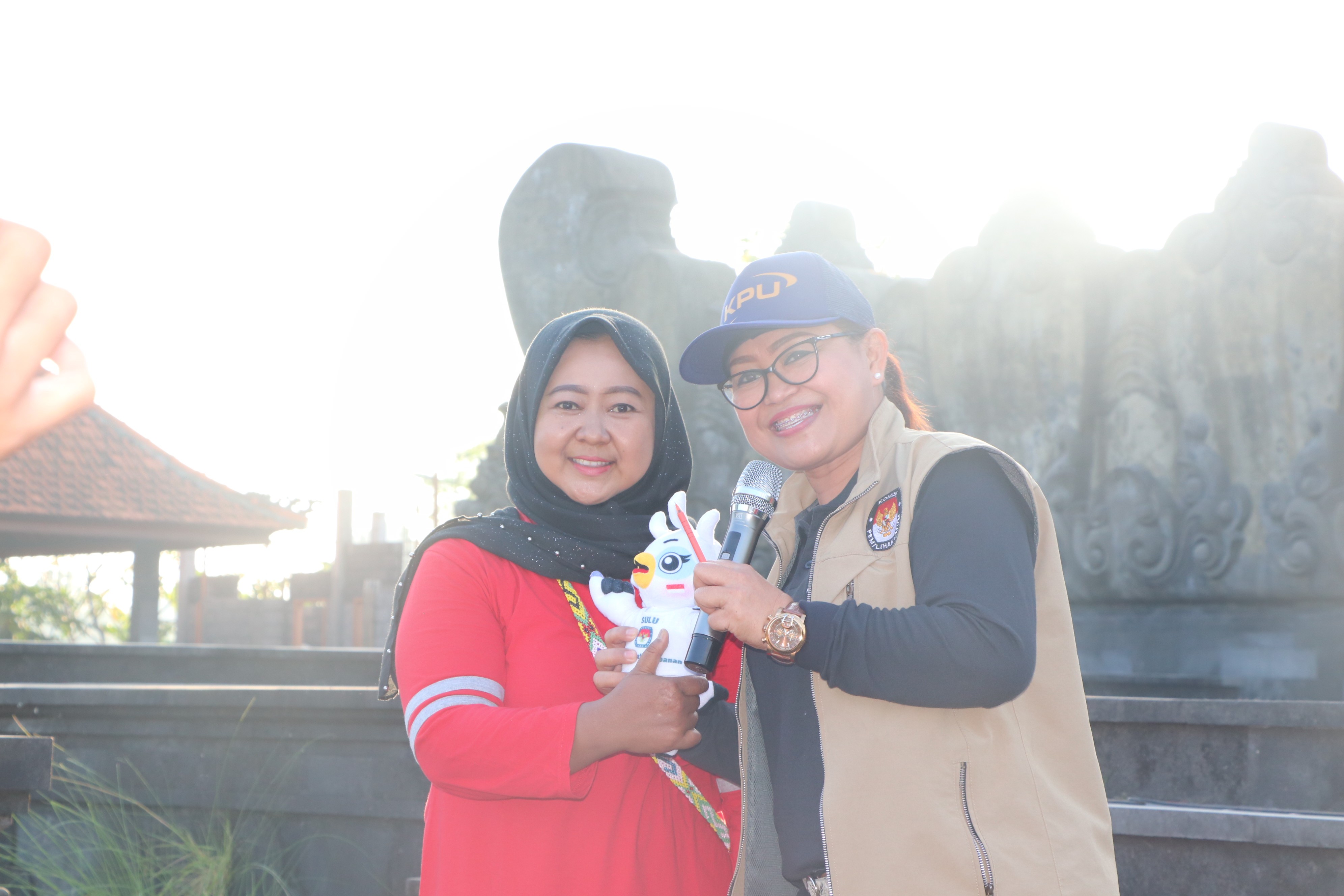 Tempat pertama yang dituju adalah Taman Bung Karno karena kebetulan di tempat itu sedang ada kegiatan Car Free Day. KPU Tabanan berkesempatan untuk sosialisasi sekaligus membagikan brosur dan juga tanya jawab seputaran Pemilu 2024 dan bagi Masyarakat yang bisa menjawab mendapatkan 1 buah boneka Sura atau Sulu.