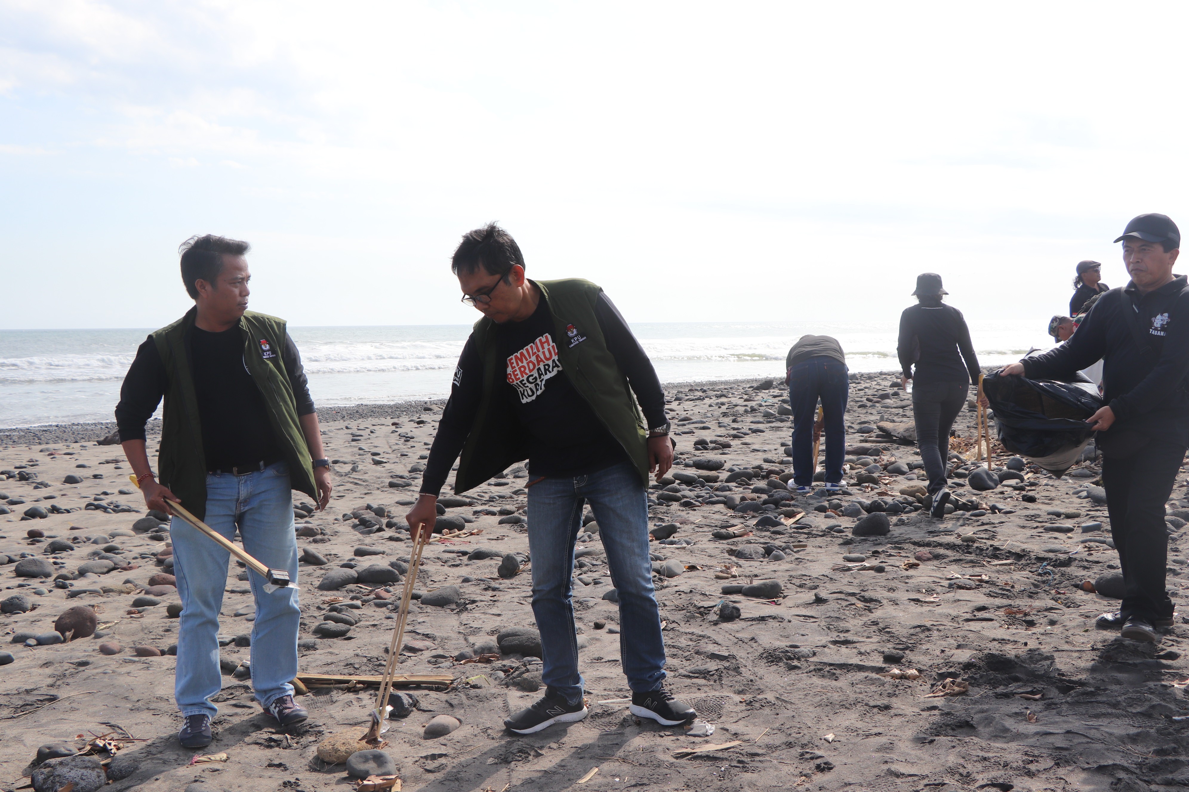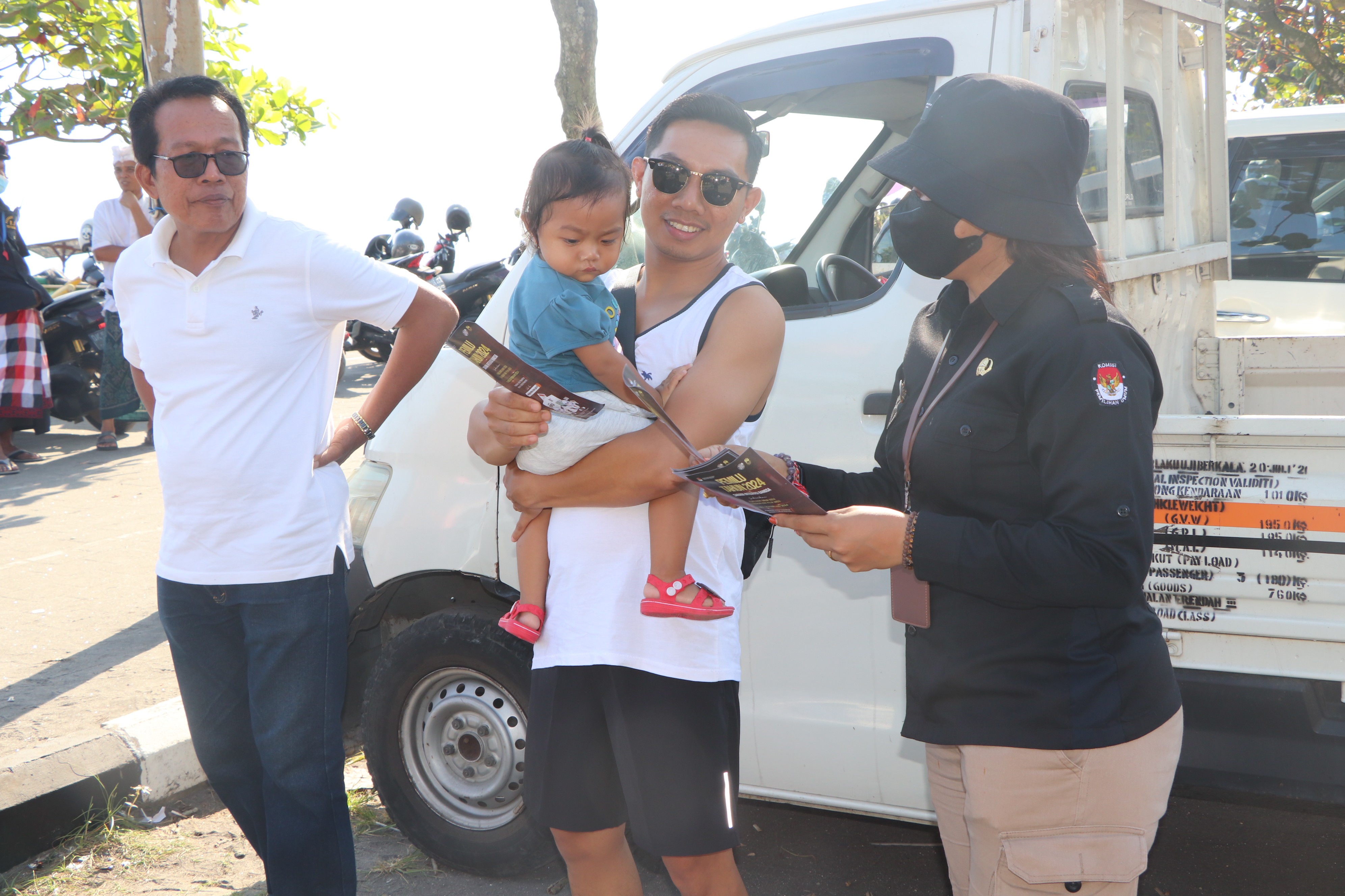 Selain KPU Tabanan melakukan sosialisasi, di tempat ini KPU Tabanan bersama seluruh Peserta Kirab juga melaksanakan kebersihan lingkungan dengan jalan memungut sampah yang bertebaran di pinggir pantai.