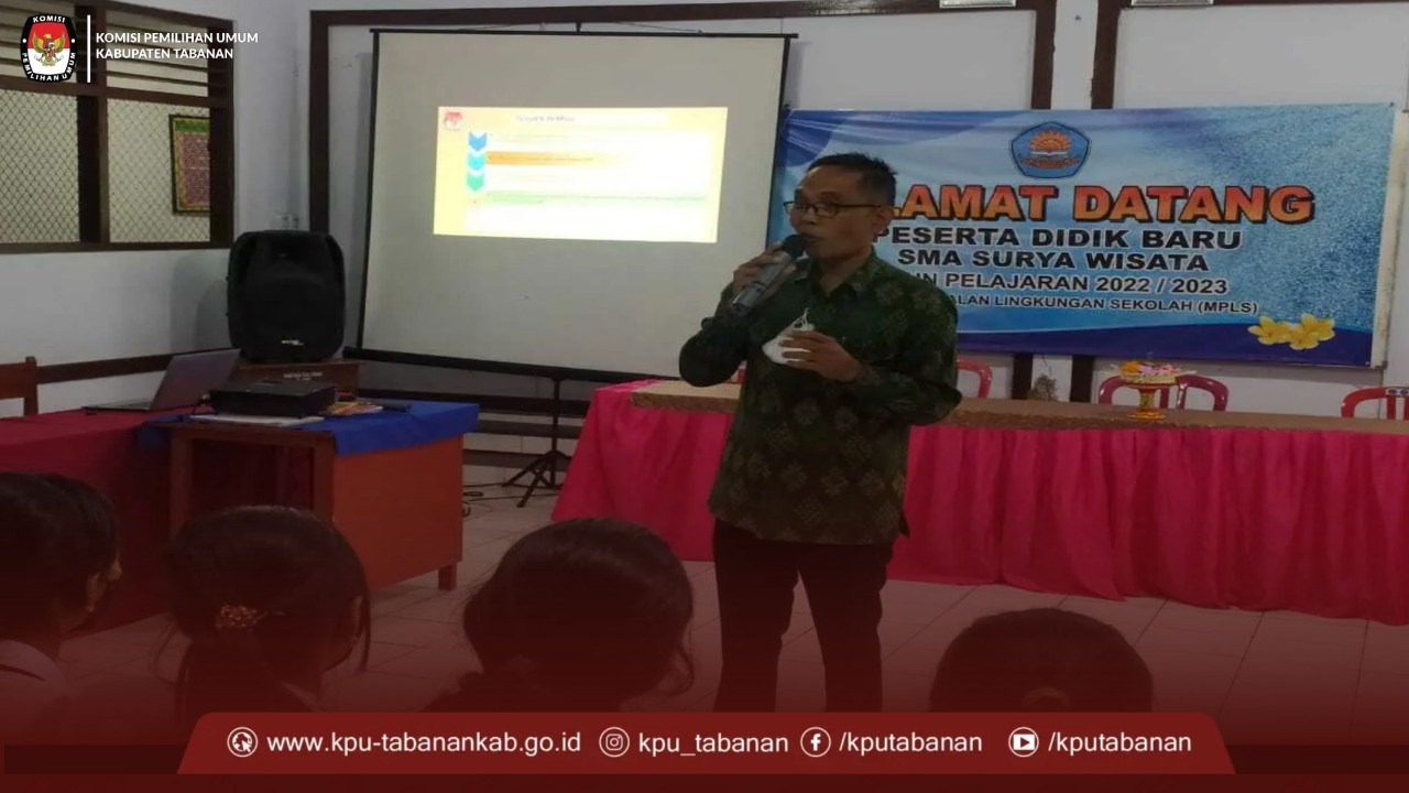 Hari ini merupakan sosialisasi kedua yang dilaksanakan KPU Tabanan. Ketua KPU Tabanan, I Gede Putu Weda Subawa, berkesempatan memberikan sosialisasi terkait Pemilu Serentak 2024 di SMA Surya Wisata & di SMK Pariwisata Dwi Tunggal 1 Tabanan. Jumlah Peserta yang mengikuti MPLS yakni sejumlah 151 di SMA Surya Wisata sedangkan sejumlah 94 Peserta MPLS di SMK Pariwisata Dwi Tunggal 1 Tabanan, hal itu terungkap saat dikonfirmasi langsung pada Sekolah bersangkutan.