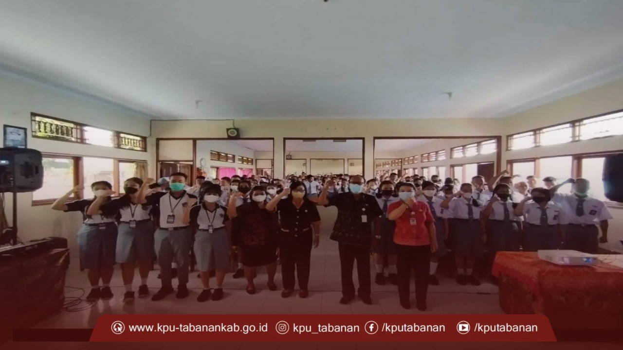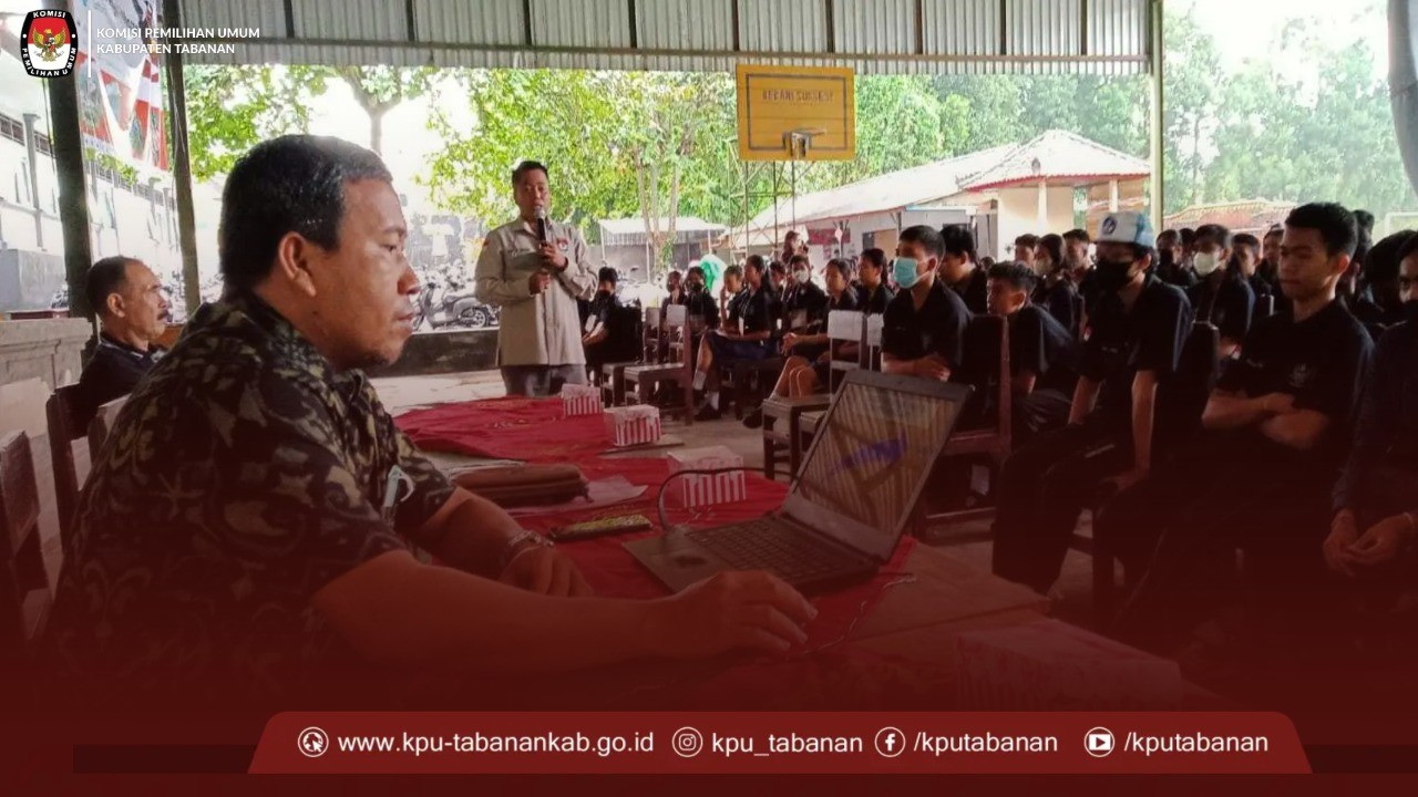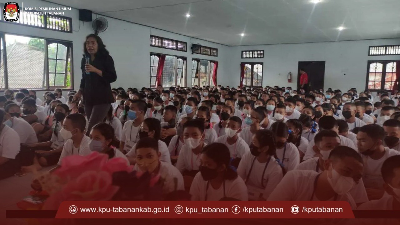 KPU Tabanan, Dangin Carik – Untuk meningkatkan partisipasi Pemilih pada Pemilu Serentak tahun 2024 khususnya di kalangan generasi muda maka KPU Kabupaten Tabanan melaksanakan sosialisasi pendidikan Pemilih Pemula pada Masa Pengenalan Lingkungan Sekolah (MPLS) di 8 (delapan) SMA/SMK yang ada di Kabupaten Tabanan, Selasa (12/07/2022).