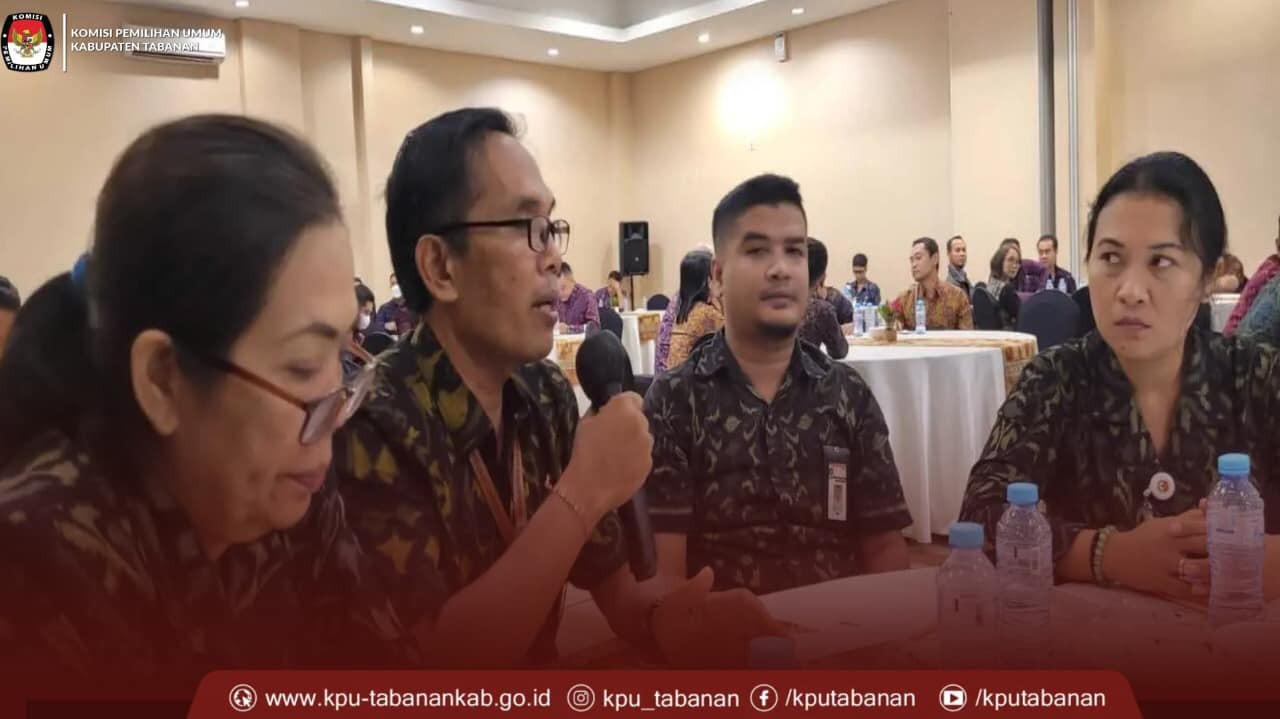 Rapat yang dibuka oleh Ketua KPU Provinsi Bali, I Dewa Gede Agung Lidartawan tersebut didampingi Anggota KPU Bali lainnya, memberikan apresiasi kepada seluruh Verifikator atas dedikasi dalam melaksanakan tahapan vermin ini.” (Humas KPU Tabanan).