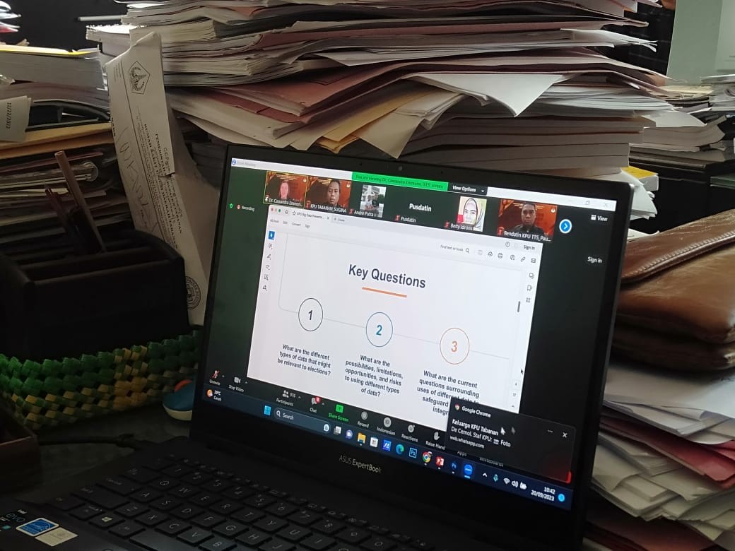 KPU Tabanan, Dangin Carik – Memenuhi undangan Ketua KPU maka Komisioner KPU Kabupaten Tabanan, I Ketut Sugina bertempat di ruang kerjannya menghadiri zoom meeting webinar “Merintis Big Data Pemilu KPU untuk Menjaga Integritas KPU” yang merupakan webinar seri kedua, Rabu (20/09/2023).