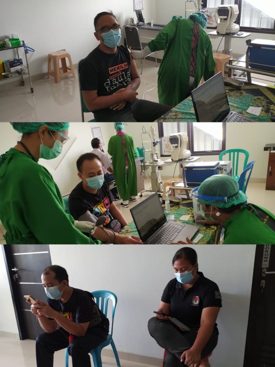 Jumlah keseluruhan Personil KPU Tabanan yang mendapatkan pelayanan Vaksinasi yakni sejumlah 32 Orang, namun terdapat Pegawai yang berhalangan hadir karena sedang Sakit dan ada juga Pegawai yang sudah datang ke RSU Bhakti Rahayu tetapi setelah diadakan pemeriksaan dan wawancara, Pegawai tersebut tidak disuntikan Vaksin atau pemberian Vaksin ditunda karena yang bersangkutan memiliki riwayat Sakit seperti Sesak Nafas dan lainnya. Oleh Tim Medis diharapkan yang bersangkutan untuk memeriksakan diri ke Rumah Sakit terlebih dahulu agar diketahui secara jelas Sakit yang dideritanya.