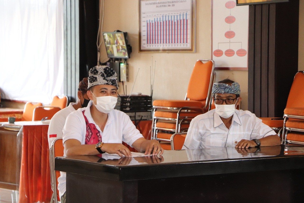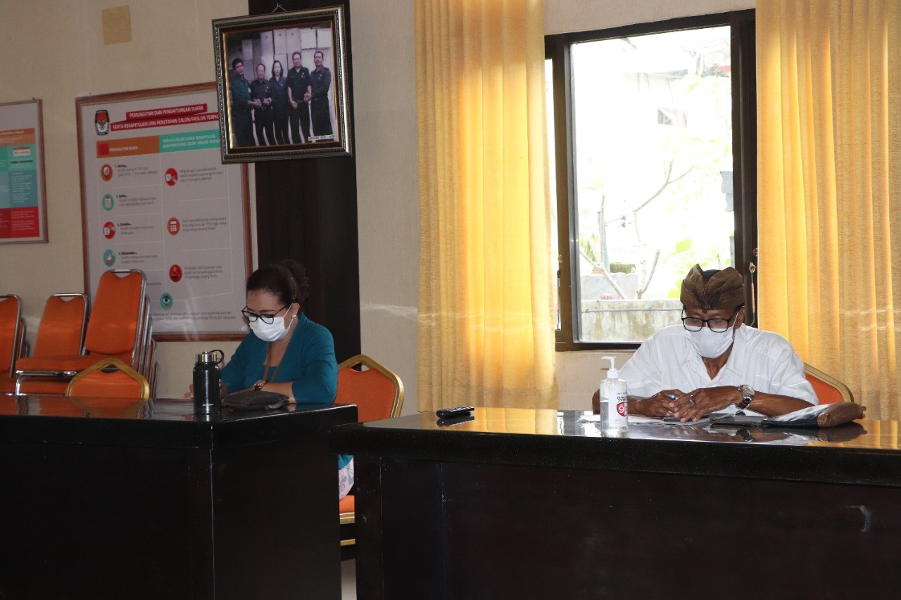 Kegiatan yang dilaksanakan dalam situasi Virus Corona atau Covid-19, dengan tetap memperhatikan protokol kesehatan seperti menjaga jarak fisik atau physical distancing, menggunakan masker, menggunakan cairan pembersih tangan atau hand zanitizer serta mencuci tangan dengan sabun dan air mengalir. (Humas KPU Tabanan).
