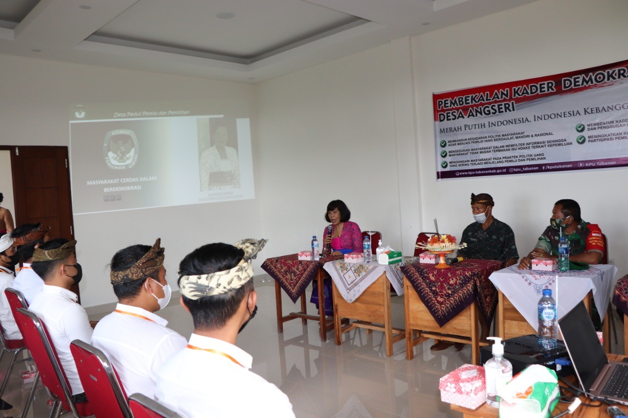 Adapun tujuannya untuk memberikan materi kepemiluan terkait kegiatan Kader gerakan literasi demokrasi, Desa Peduli Pemilu dan Pemilihan, bertempat di ruang pertemuan Kantor Desa Angseri, sekitar pukul 09.00 Wita, Kamis (16/12/2021). Hadir pula dalam acara itu Komisioner KPU Tabanan Ketua Divisi Sosialisasi, Pendidikan Pemilih, Parmas dan SDM, Ni Putu Suaryani serta beberapa Pegawai Sekretariat KPU Tabanan.