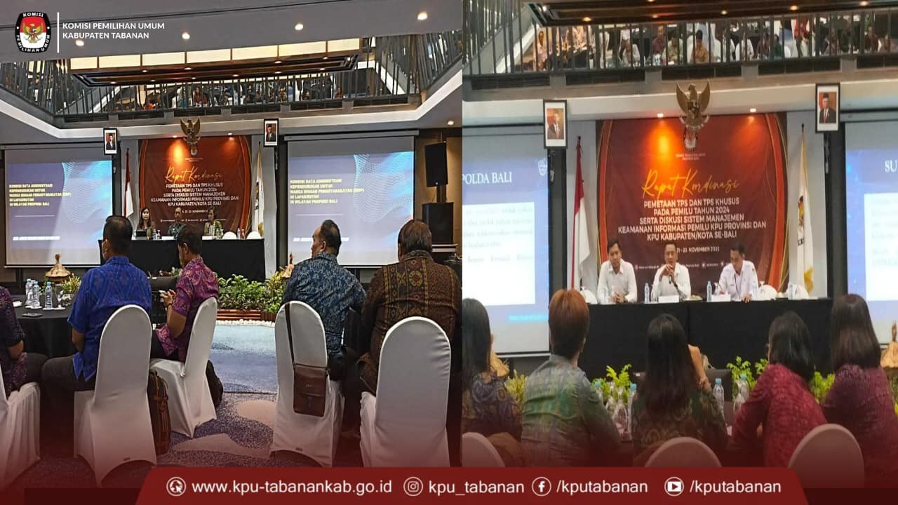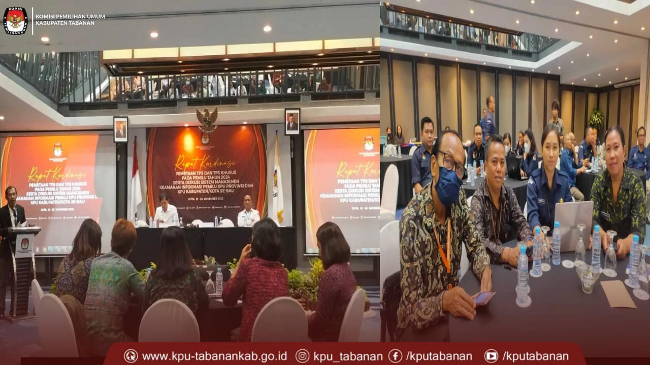 KPU Tabanan, Dangin Carik – Mengutip dari unggahan media sosial KPU Kabupaten Tabanan tanggal 24 November 2022, “Persiapkan Pemetaan Tempat Pemungutan Suara (TPS) dan TPS Khusus pada Pemilu Serentak tahun 2024, KPU Provinsi Bali gelar rapat koordinasi (Rakor) dengan KPU Kab./Kota Se-Bali, pada tanggal 21 - 23 November 2022 di Bali Dynasty Resort, Kuta.