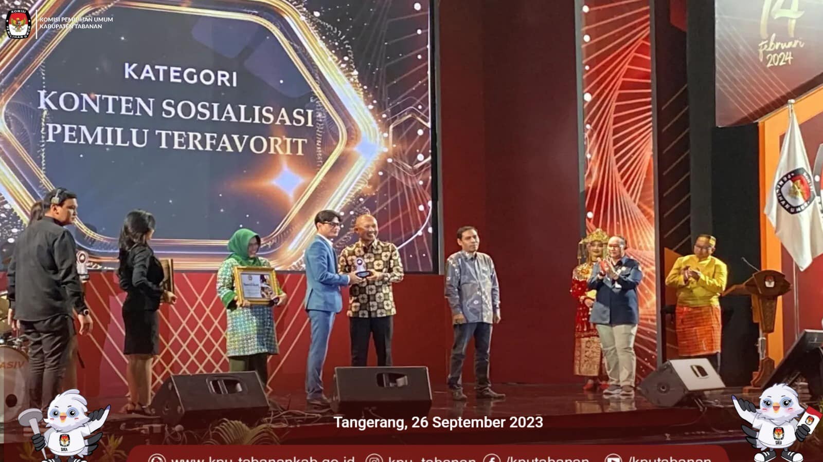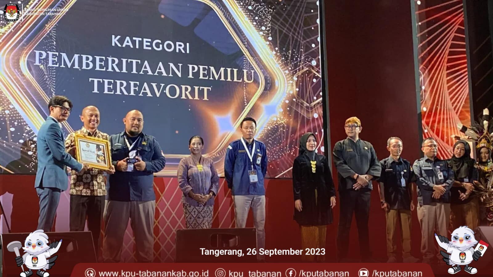 KPU Tabanan, Dangin Carik – Melansir unggahan media sosial Komisi Pemilihan Umum (KPU) Kabupaten Tabanan, Rabu (27/09/2023), “Selamat KPU Provinsi Bali atas kerja keras dan kerja cerdasnya dalam mensosialisasikan berita Pemilu kepada Masyarakat dan pada malam pemberian apresiasi kehumasan tingkat nasional akhirnya KPU Bali mendapatkan 2 (Dua) penghargaan yakni, kategori Konten Sosialisasi Pemilu Terfavorit dan kategori Pemberitaan Pemilu Terfavorit.