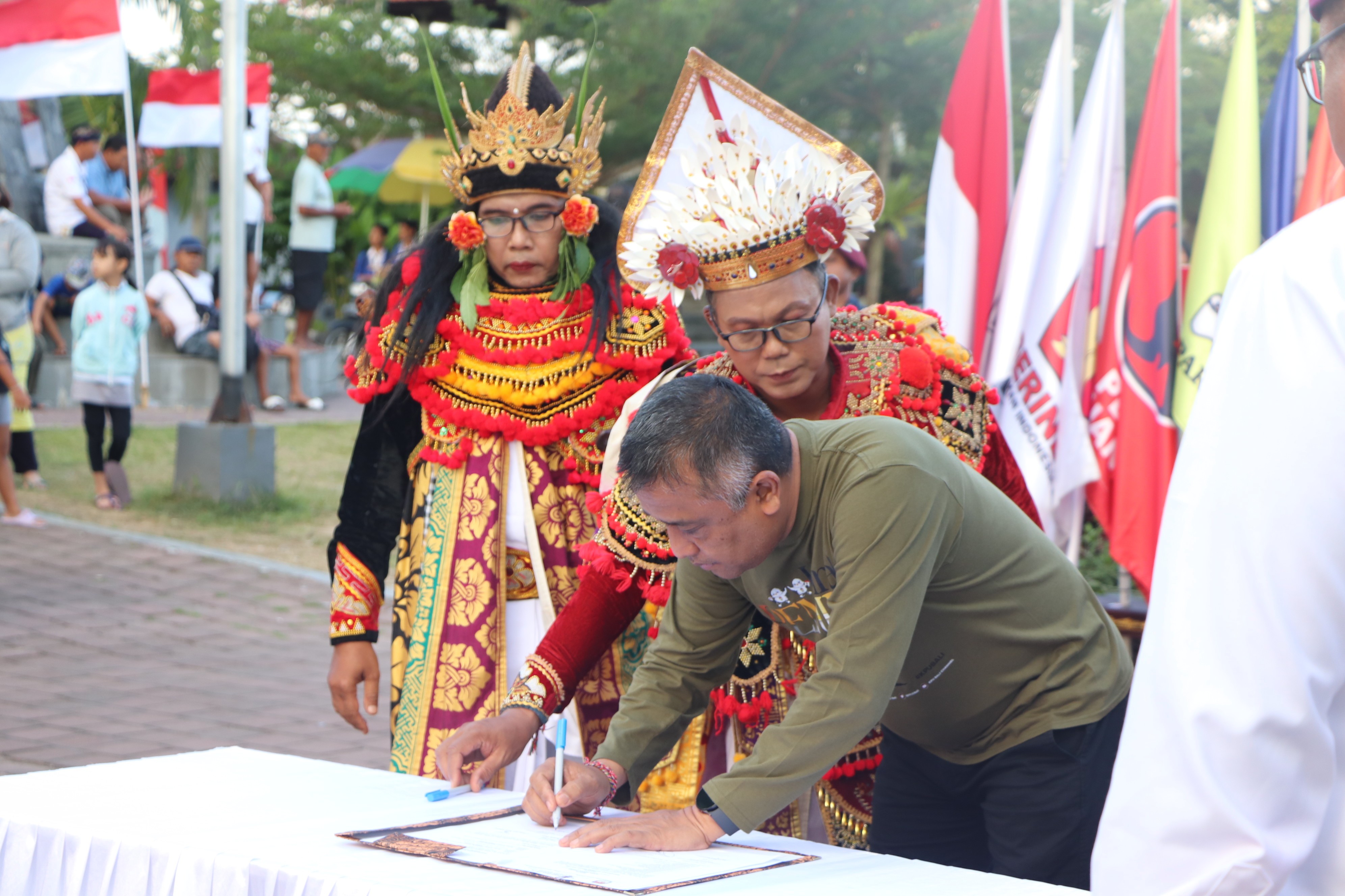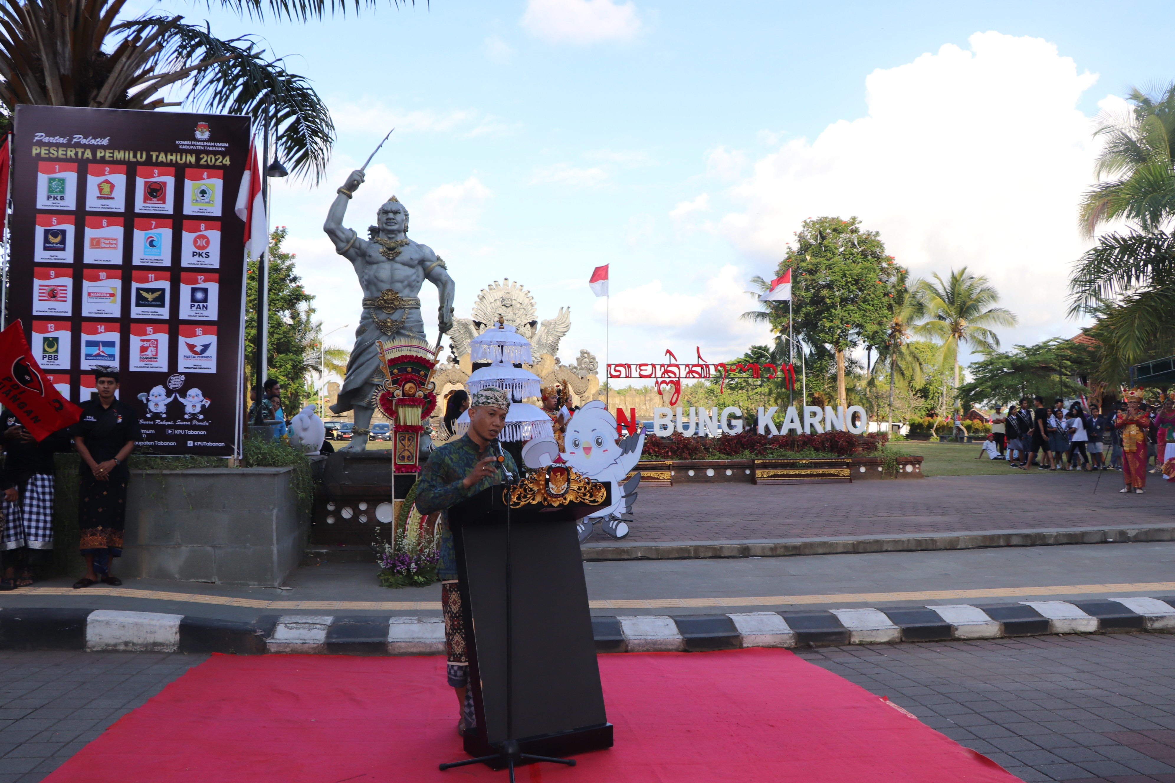 KPU Tabanan, Dangin Carik – Dalam rangka sosialisasi dan pendidikan Pemilih dalam Pemilu tahun 2024 Komisi pemilihan Umum (KPU) Kabupaten Tabanan menggelar Serah Terima dan Kirab Bendera Partai Politik Peserta Pemilu tahun 2024 di Kabupaten Tabanan sekitar pukul 16.00 Wita, bertempat di Taman Bung Karno Tabanan, Jumat (18/08/2023).