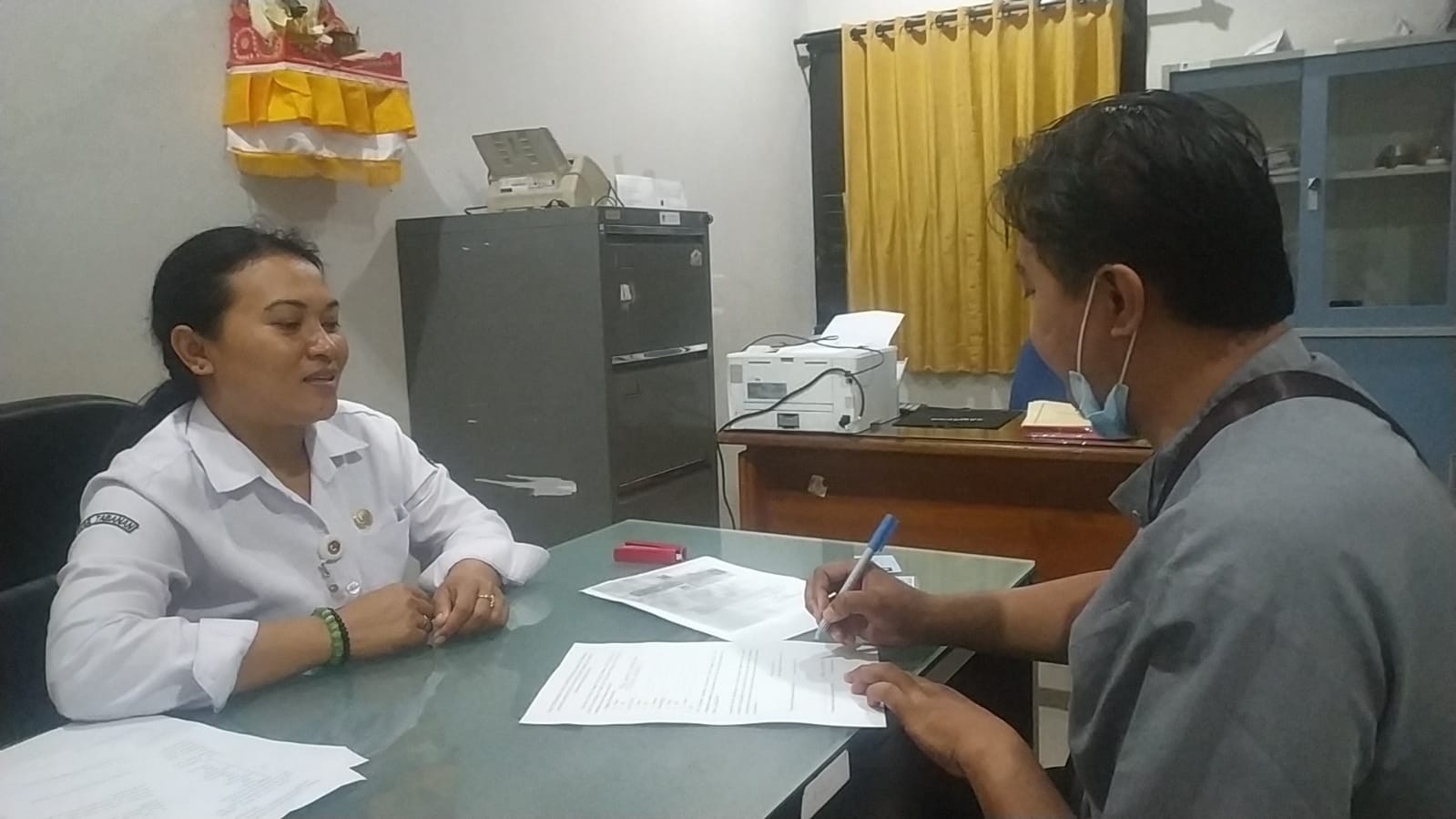Petugas yang ada di KPU Tabanan mewawancarai Anggota Parpol yang hadir di KPU Tabanan agar dapat menentukan keanggotaannya pada satu Partai Politik dengan memperlihatkan Kartu Tanda Anggota (KTA) dan Kartu Tanda Penduduk (KTP) Elektronik atau Kartu Keluarga serta mengisi data pada Surat Keterangan dengan menyatakan bahwa yang bersangkutan adalah benar dan sah sebagai Anggota Partai Politik tertentu. Selanjutnya Surat Keterangan dimaksud ditandatangani oleh yang bersangkutan, Petugas Verifikasi dan Petugas Penghubung Partai.