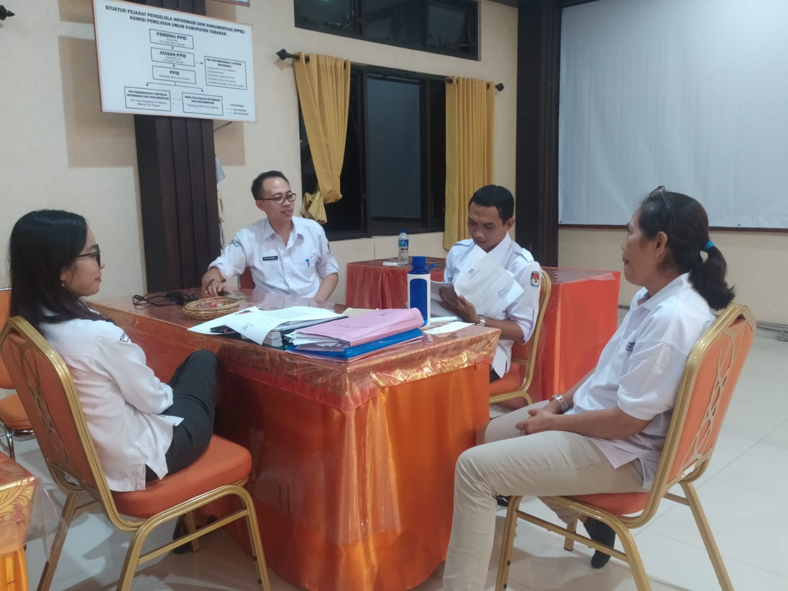 Selain hadir Ketua KPU Tabanan, I Gede Putu Weda Subawa dan Anggota KPU Tabanan, hadir juga jajaran Sekretariat KPU Tabanan. Hadir pula Petugas Penghubung Parpol dan Anggota Bawaslu Kabupaten Tabanan yang didampingi beberapa Staf Sekretariat Bawaslu Tabanan untuk Pengawasan. Selain itu hadir Ketua KPU Provinsi Bali, I Dewa Agung Gede Lidartawan bersama Pegawai Sekretariat KPU Bali untuk monitoring. (Humas KPU Tabanan).