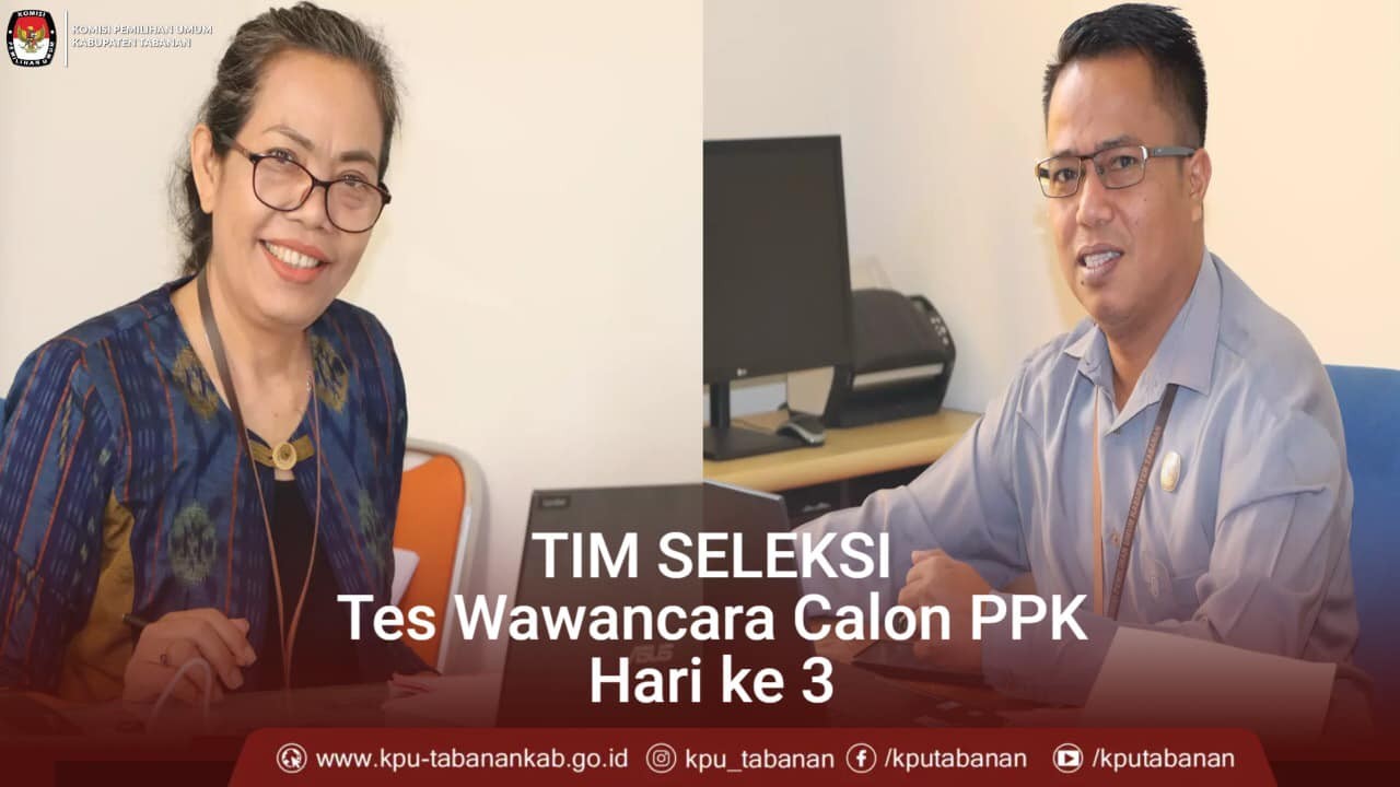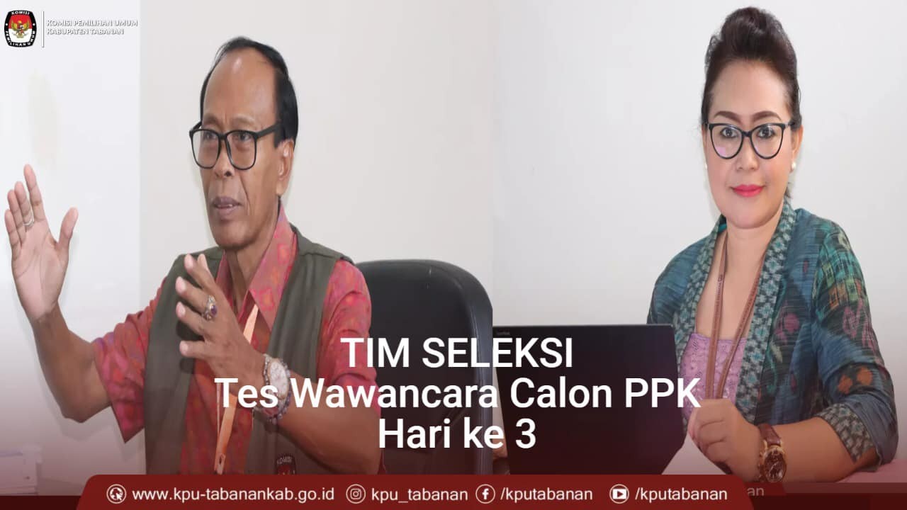 Sebagai Pewawancara adalah Anggota KPU Tabanan Ketua Divisi Hukum dan Pengawasan, I Wayan Sutama dan Ni Putu Suaryani (Ketua Divisi Sosialisasi, Pendidikan Pemilih, Parmas dan SDM). Selain itu Ketua Divisi Teknis Penyelenggaraan, Luh Made Sunadi dan Ketua Divisi Perencanaan, Data dan Informasi, I Ketut Sugina.