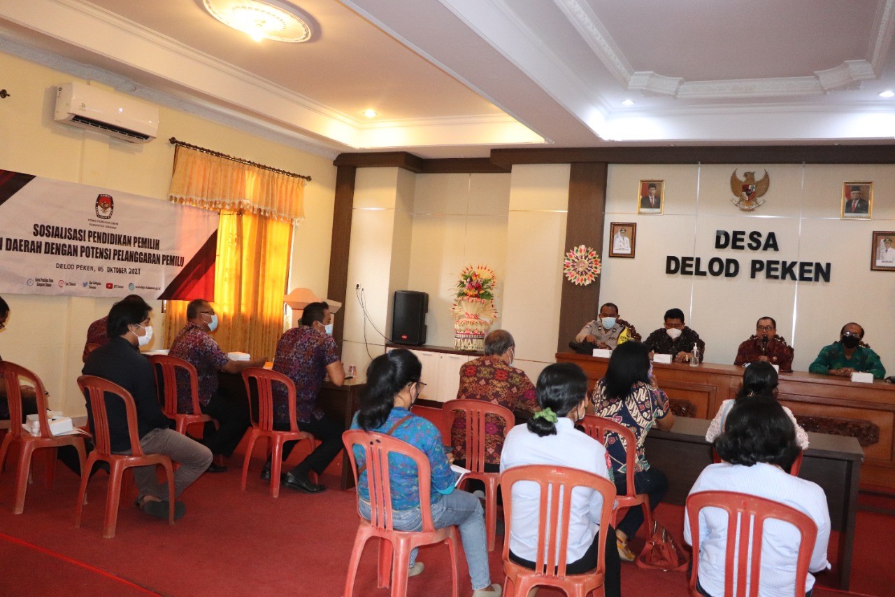 Acara dimulai sekitar pukul 10.00 Wita bertempat di ruang rapat Kantor Perbekel Desa Delod Peken. Tampak hadir Perbekel Desa Delod Peken, Petugas Kepolisian di tingkat Desa dan Peserta sosialisasi yang terdiri dari Tokoh Masyarakat, Pemuda, Perempuan dan Aparatur Desa setempat. Sebagai Narasumber, KPU Tabanan mengundang Ketua Badan Pengawas Pemilu (Bawaslu( Kabupaten Tabanan sesuai surat Ketua KPU Tabanan Nomor Ketua KPU Kabupaten Tabanan Nomor 689/PP.06-SD/5102/2021, tanggal 29 September 2021,