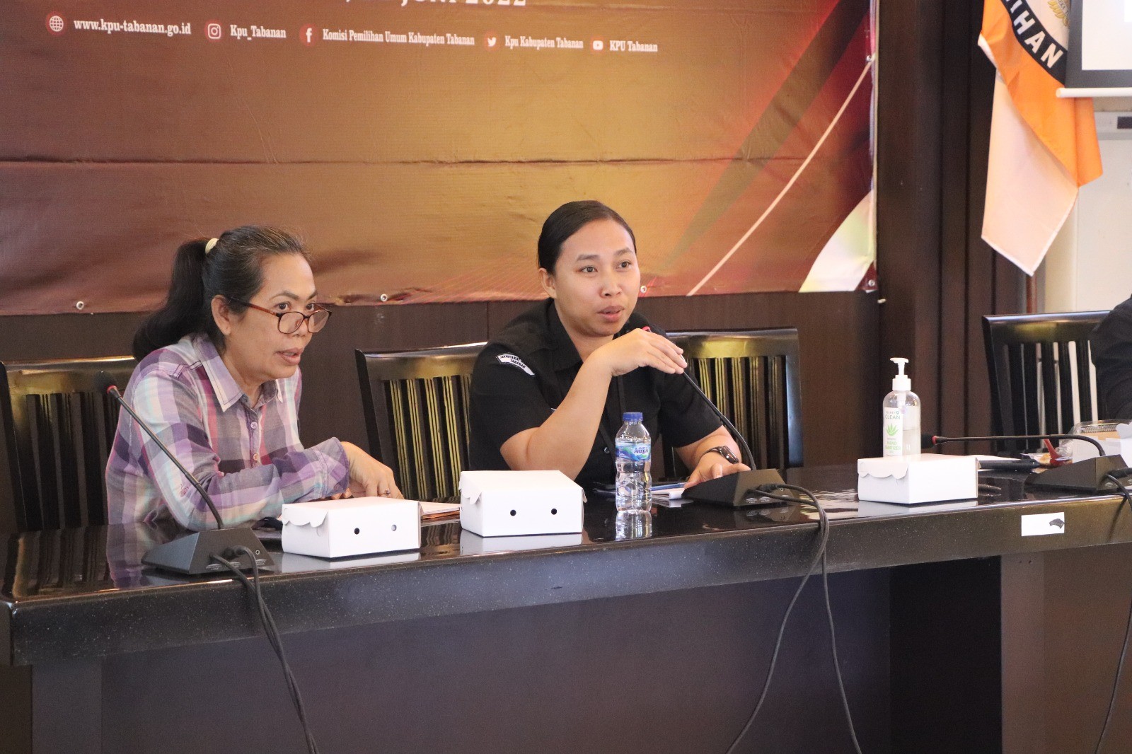 Rakor dibuka oleh Ketua KPU Tabanan, I Gede Putu Weda Subawa. Dalam sambutannya, Weda Subawa mengevaluasi secara umum terhadap kinerja Petugas Pemutakhiran Data Pemilih (Pantarlih), permasalahan - permasalahan yang dihadapi hingga beberapa musibah yang dialami oleh Petugas saat mencoklit.