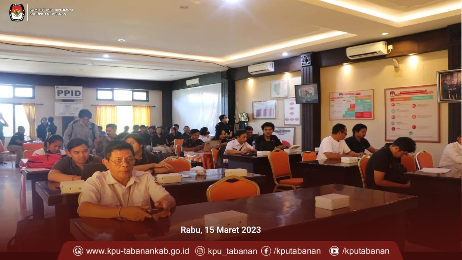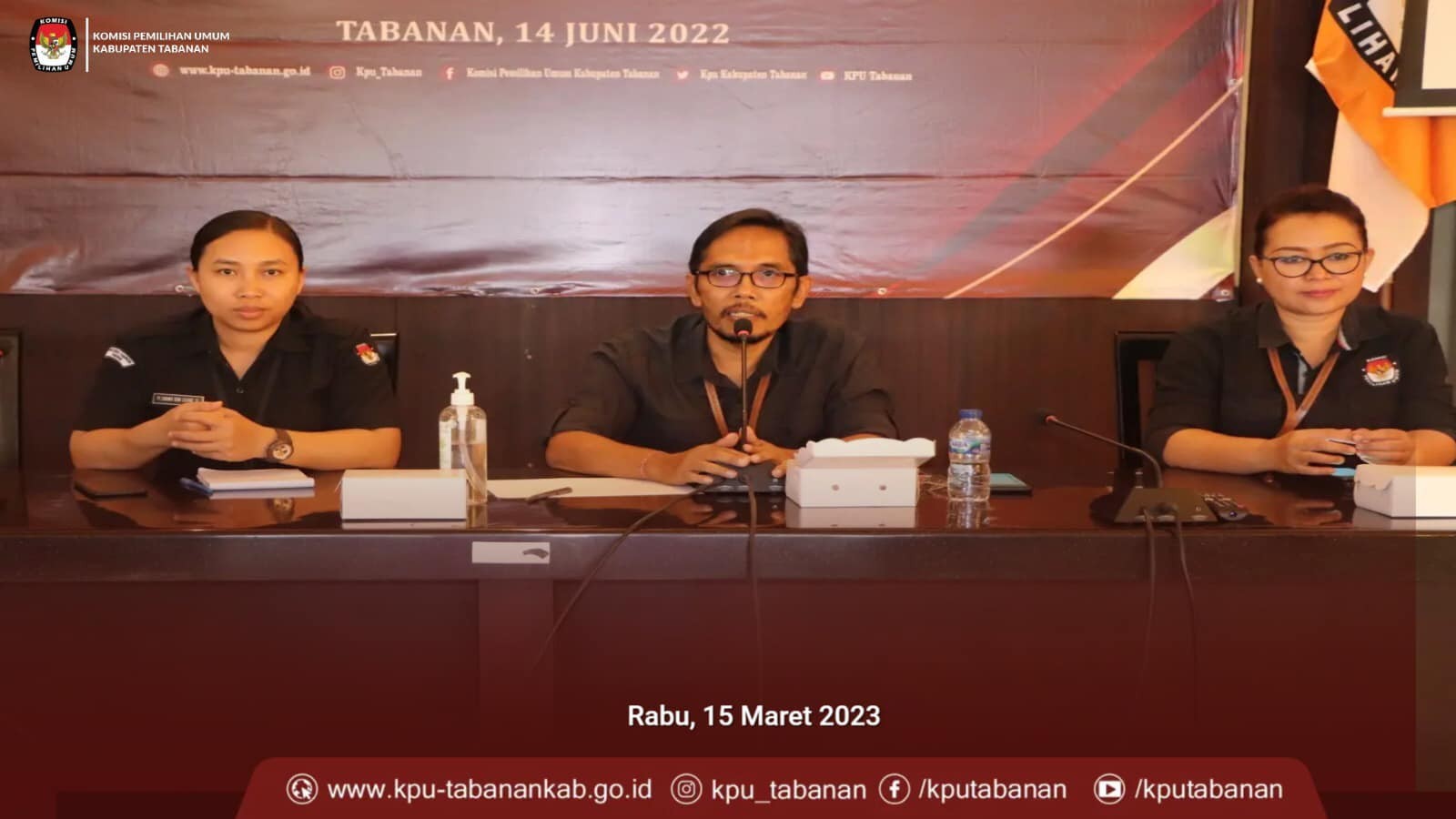 KPU Tabanan, Dangin Carik – Melansir dari unggahan media sosial Komisi Pemilihan Umum (KPU) Kabupaten Tabanan pada hari Rabu tanggal 15 Maret tahun 2023, “Rabu, 15 Maret 2023, bertempat di ruang rapat Kantor KPU Tabanan, Jl. PB. Sudirman No 1 Dangin Carik Tabanan, KPU Tabanan kembali kumpulkan Panitia Pemilihan Kecamatan (PPK) serta mengundang Badan Pengawas Pemilihan Umum (Bawaslu) Kabupaten Tabanan dalam Rakor dan Bimbingan Teknis Tindak Lanjut, Evaluasi Hasil Pencocokan dan Penelitian (Coklit) dan Penyusunan Daftar Pemilih Hasil Pemutakhiran (DPHP) Pemilu 2024.