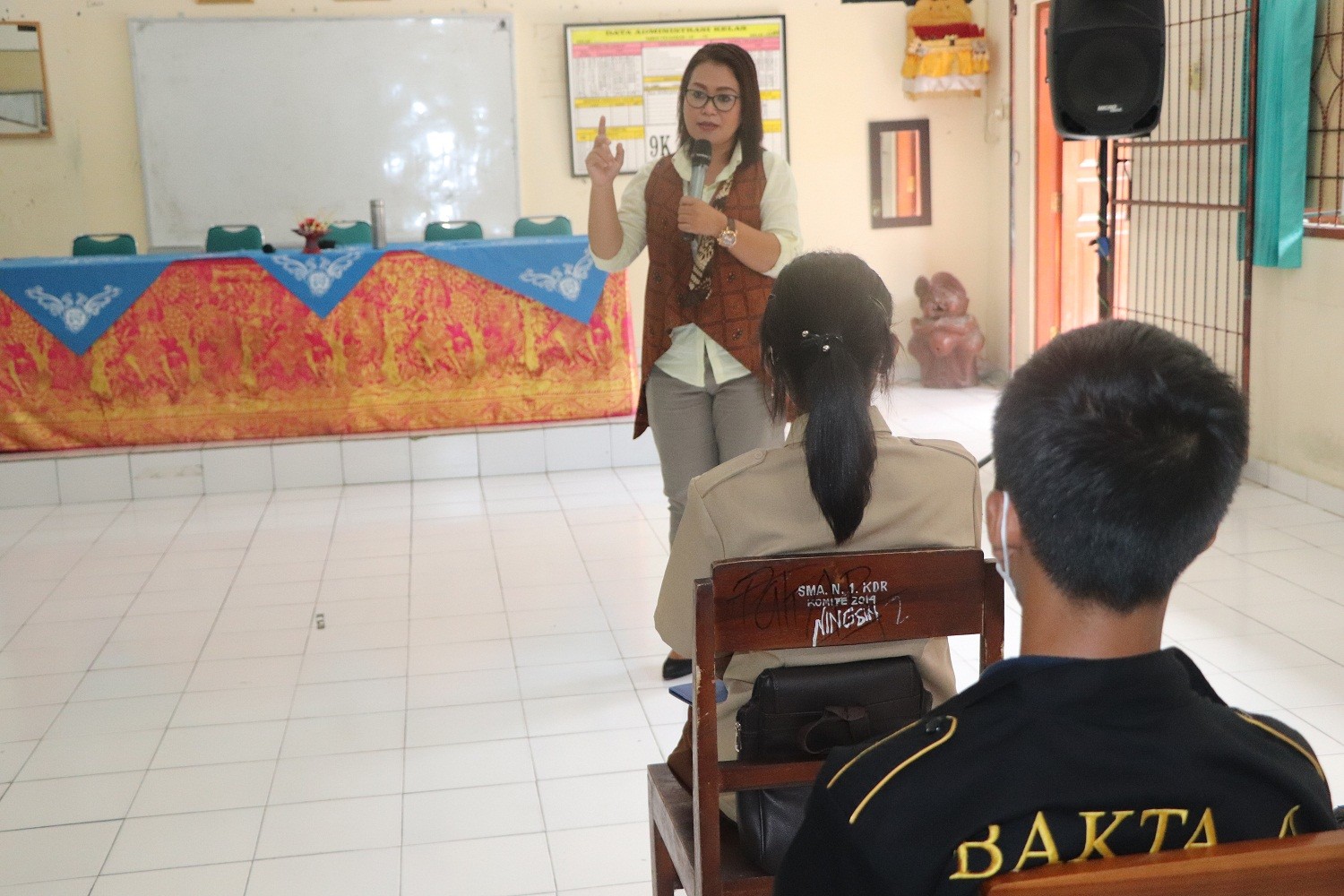 KPU Tabanan, Dangin Carik – Dalam rangka memberikan pengetahuan demokrasi kepada generasi muda, Anggota Komisi Pemilihan Umum (KPU) Kabupaten Tabanan Ketua Divisi Sosialisasi, Pendidikan Pemilih, Parmas dan SDM, Ni Putu Suaryani pada Jumat (03/06/2022) sekitar pukul 09.00 Wita hadir sebagai Narasumber dalam kegiatan peningkatan pengetahuan dan pemahaman demokrasi generasi muda bagi Peserta didik, bertempat di Aula SMA Negeri 1 Kediri, Jl. Bingin Ambe, Kediri, Tabanan.