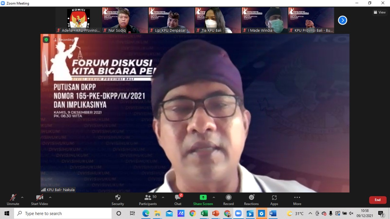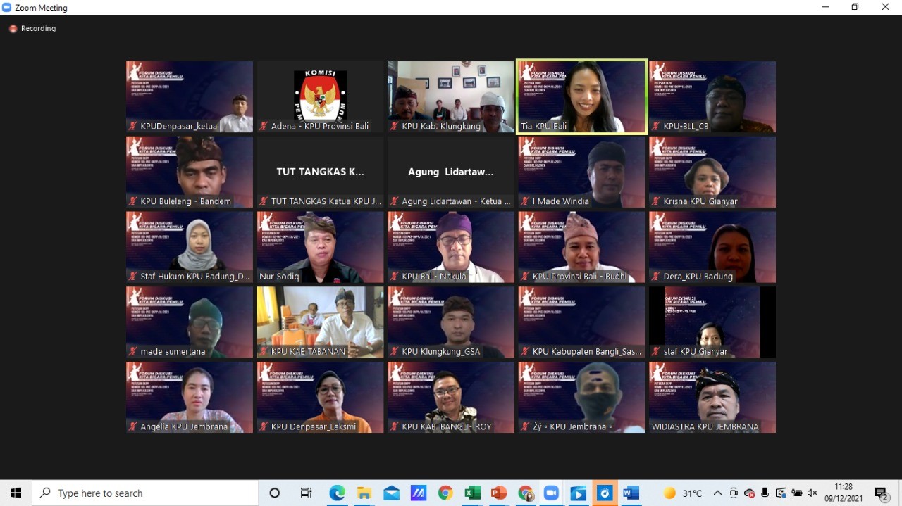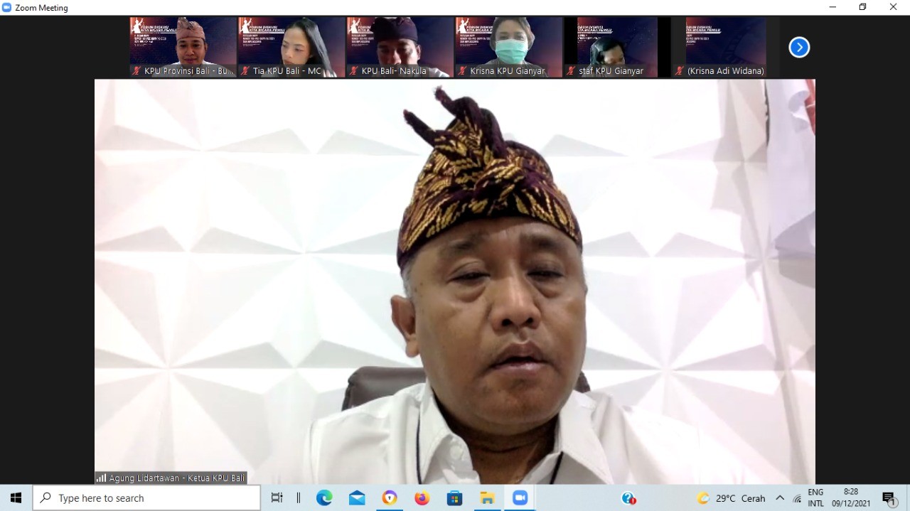 Kegiatan yang dilaksanakan secara daring itu, diselenggarakan KPU Provinsi Bali dalam rangka menambah wawasan terhadap sengketa kepemiluan sesuai Surat KPU Bali Nomor 1647/HK.05/51/2021, tertanggal 7 Desember 2021. Acara dibuka Ketua KPU Bali, I Dewa Agung Gede Lidartawan serta perwakilan KPU Kabupaten/Kota Se-Bali.