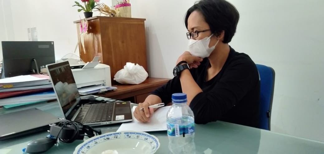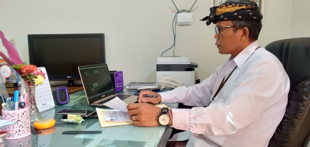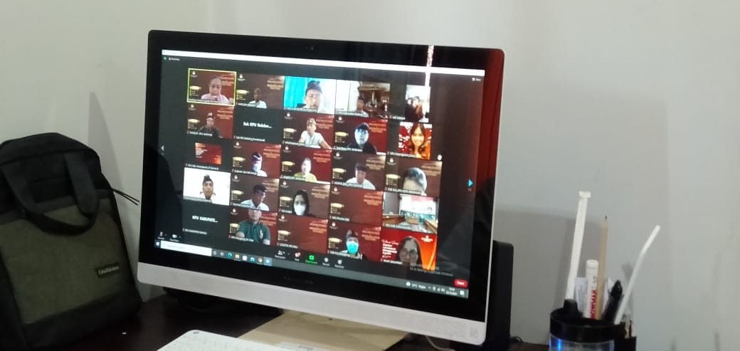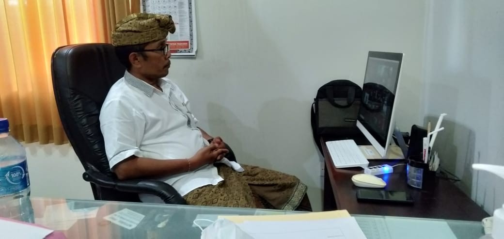 Walaupun dilaksanakan melalui Zoom Meeting, kegiatan ini tetap memperhatikan protokol kesehaan seperti menggunakan cairan pembersih tangan atau hand zanitizer serta mencuci tangan dengan sabun dan air mengalir. (Humas KPU Tabanan)