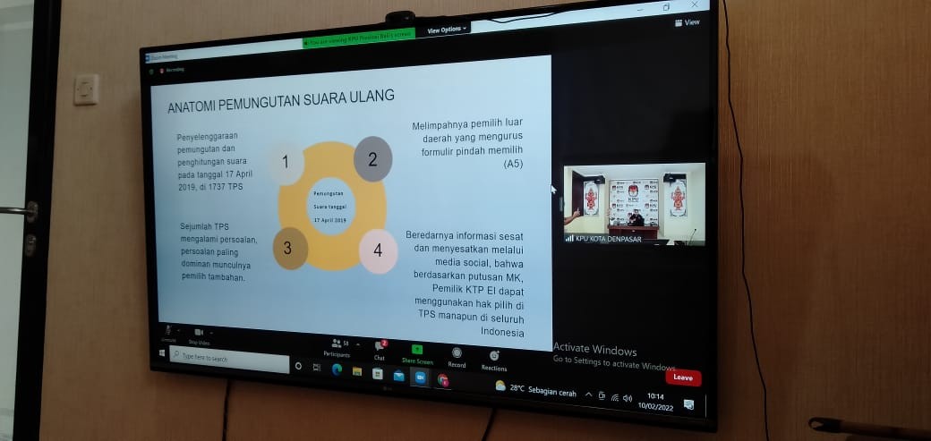 KPU Tabanan, Dangin Carik – Hari ini KPU Kabupaten Tabanan mengikuti Rapat online terkait pembahasan hasil reviu dana hibah non Pemilihan tahun 2022 dengan Inpektorat KPU RI dan dalam Zoom Meeting mengenai Problematika Hukum PSU yang diadakan KPU Provinsi Bali, Kamis (10/02/2022).