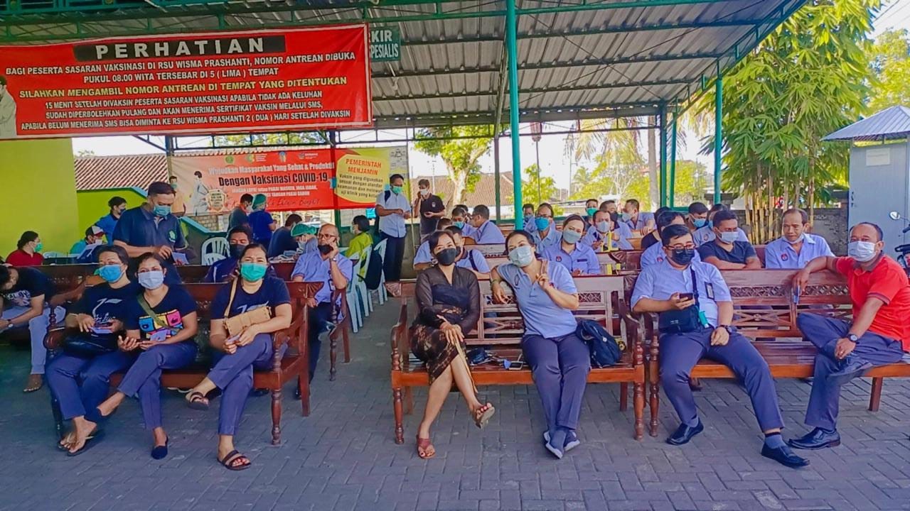 Pelayanan Vaksinasi dilaksanakan di halaman Rumah Sakit Umum Wisma Prasanthi dimulai sekitar pukul 08.00 Wita, Senin (24/01/2022). Hadir dalam kegiatan itu Ketua KPU Kabupaten Tabanan, I Gede Putu Weda Subawa beserta seluruh Anggota KPU Tabanan.