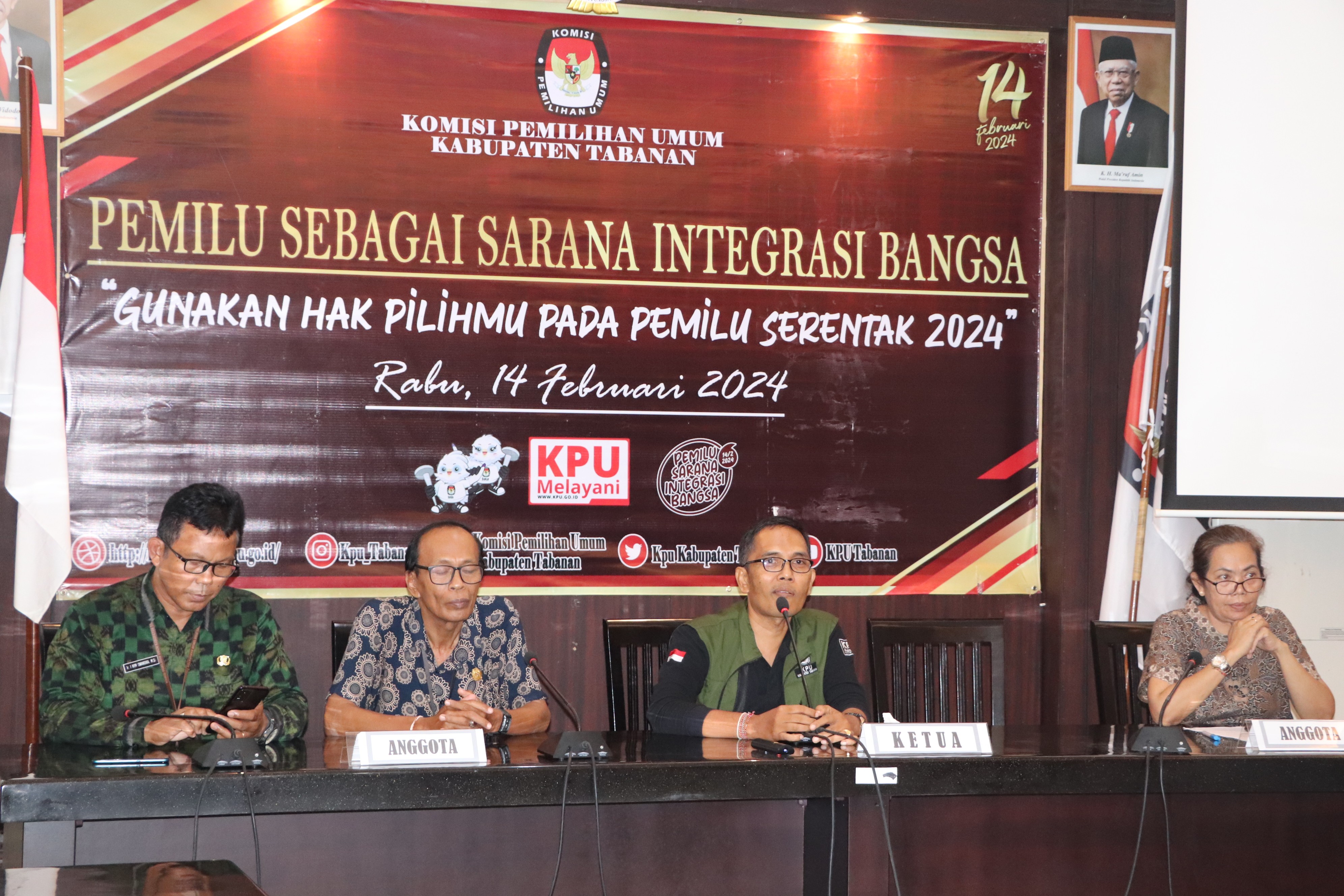 Komisioner KPU Tabanan lainnya (Anggota KPU Tabanan), Ni Putu Suaryani mengungkapkan, “Walaupun sudah keluar dari KPU Tabanan, tetaplah ingat untuk mensosialisasikan Pemilu Serentak yang akan digelar pada hari Rabu tanggal 14 Februari tahun 2024 mendatang.”