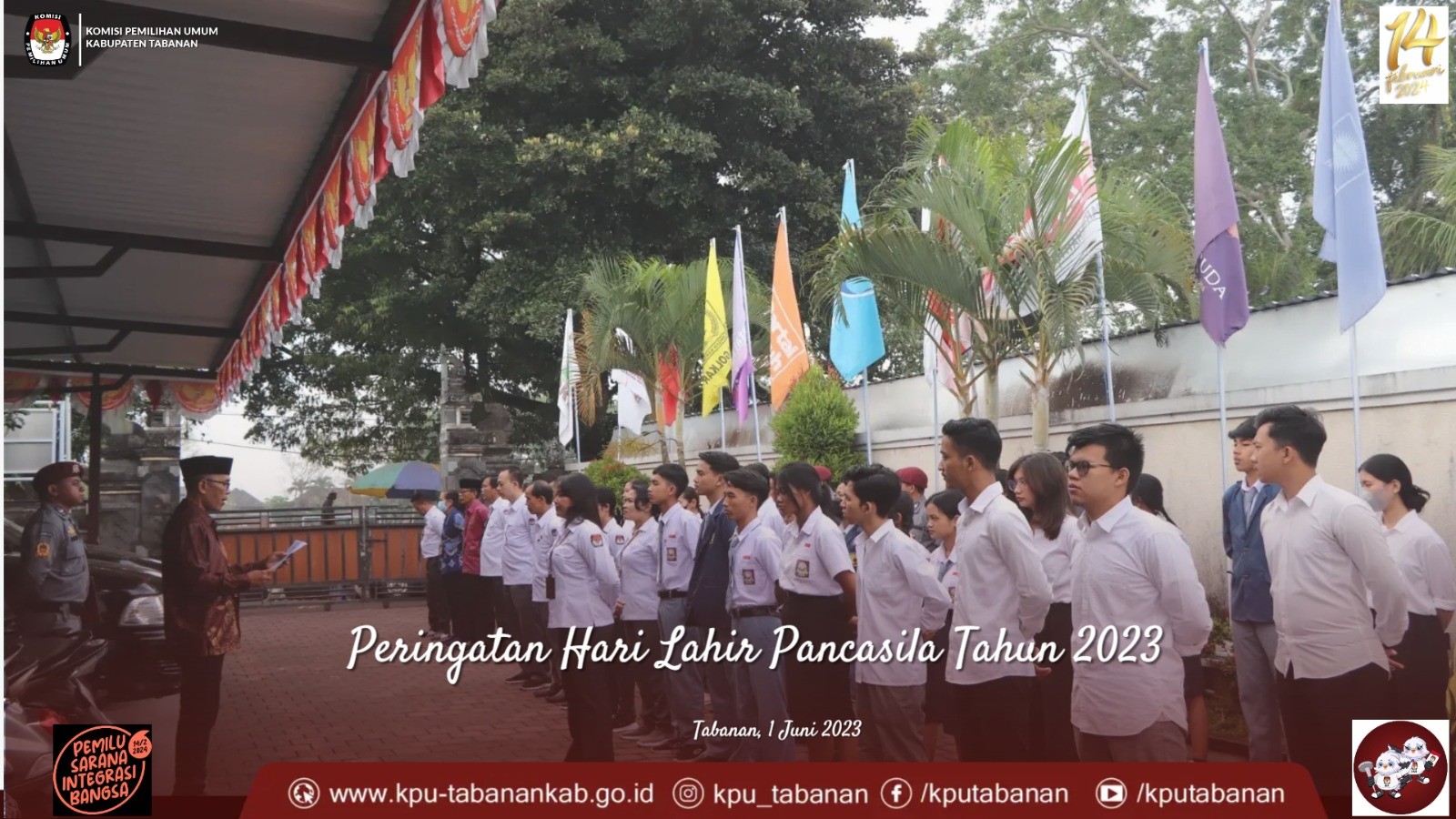 Sebagai Inspektur Upacara adalah Ketua KPU Tabanan, I Gede Putu Weda Subawa sekaligus membacakan Amanat Presiden Republik Indonesia. Bendera Merah Putih akan berkibar penuh hari ini, KPU Tabanan juga telah memasang spanduk hari lahir Pancasila di depan Kantor KPU Tabanan dengan tema “Gotong Royong Membangun Peradaban dan pertumbuhan Global” dan semboyan “Aktualisasi Pancasila, Energi Pertumbuhan Indonesia.” Humas KPU Tabanan).