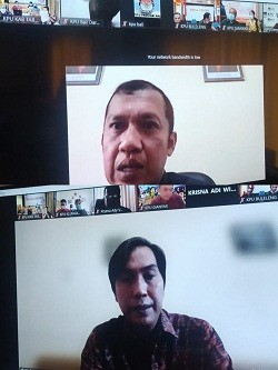 Komisioner KPU Kabupaten Tabanan yakni Ketua KPU Tabanan, I Gede Putu Weda Subawa, Anggota KPU Tabanan Ketua Divisi Perencanaan, Data dan Informasi, I Ketut Sugina mengikuti Pertemuan Dalam Jaringan (Daring) dimaksud melalui aplikasi zoom.Hadir pula Ketua Divisi Hukum dan Pengawasan, I Wayan Sutama dan Kasubbag Program dan Data, Putu Eviyanti Dewi Lestari serta Staf Sub Bagian Program dan Data Sekretariat KPU Tabanan, Pukul 10.00 Wita, bertempat di Ruang Rapat Kantor KPU Tabanan, Selasa (27/04/2021).