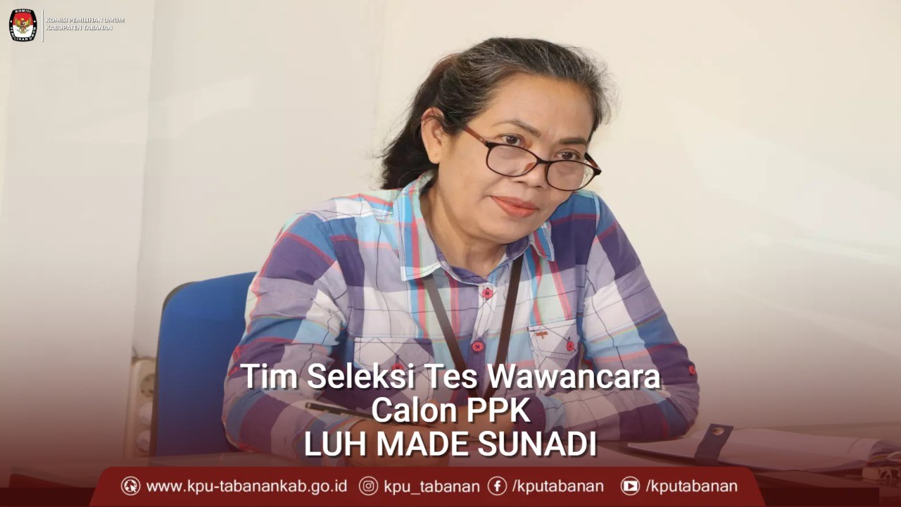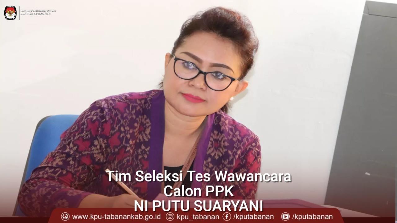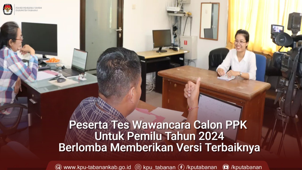 Hal senada juga diungkapkan Komisioner KPU Tabanan, Ni Putu Suaryani, bahwa terdapat 4 Komisioner yang melaksanakan wawancara. Dijelaskannya pula, “Durasi wawancara kurang lebih 12 menit, tergantung pendalaman Pewawancara. Seleksi dilaksanakan selama 3 hari dari tanggal 11 s/d 13 Desember 2022 terhadap seluruh Calon Anggota PPK dan Pengumuman hasil seleksi wawancara kisaran waktu 14 s/d 16 Desember 2022.”